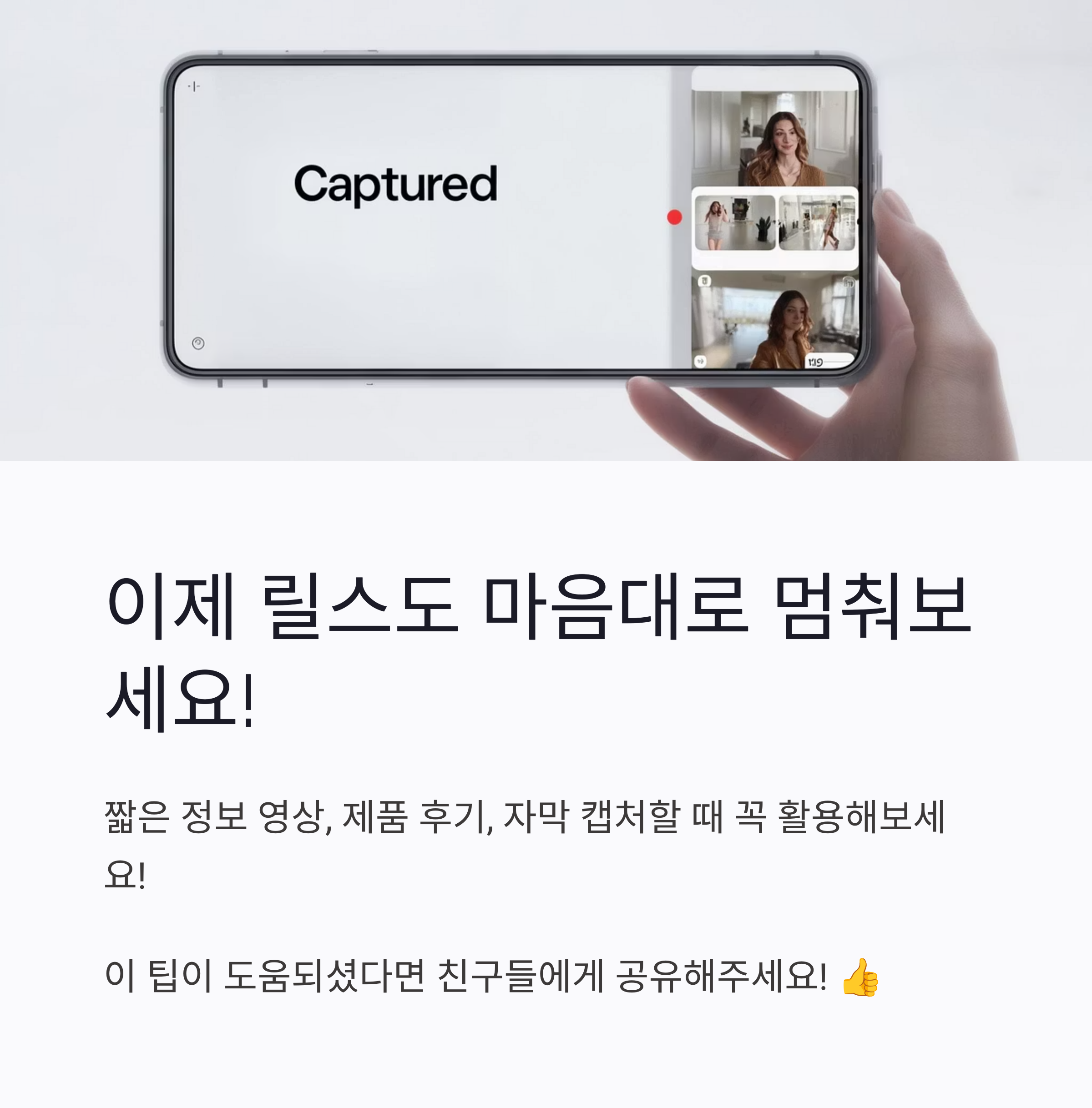 릴스 중 유용한 정보 캡처하거나, 자세히 보고 싶을 때 꼭 도움될 거예요 🙌