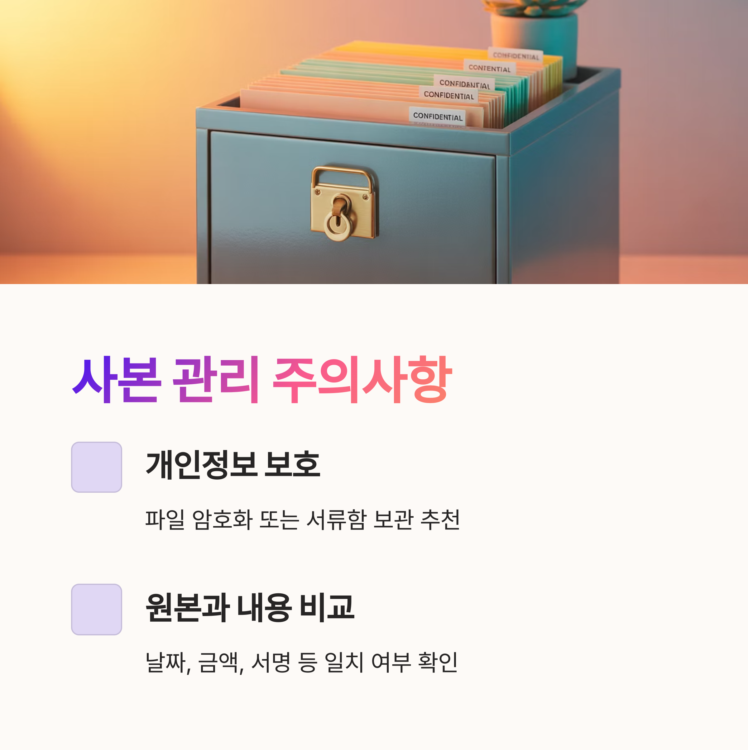 | 내용 확인 | 금액, 날짜, 서명 등 원본과 일치하는지 반드시 검토 |
