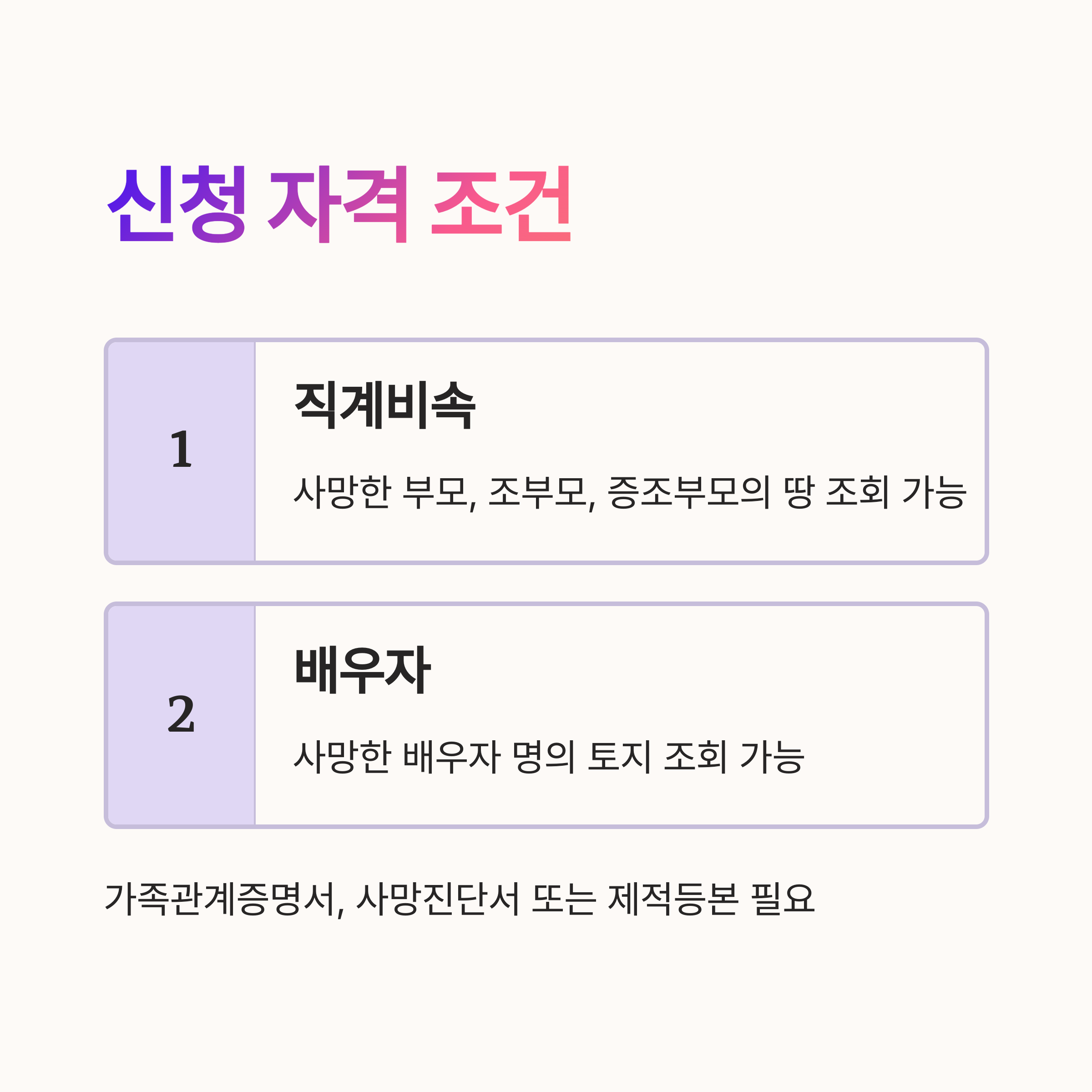| 직계비속 | 사망한 부모, 조부모, 증조부모의 땅을 찾고자 하는 경우 |