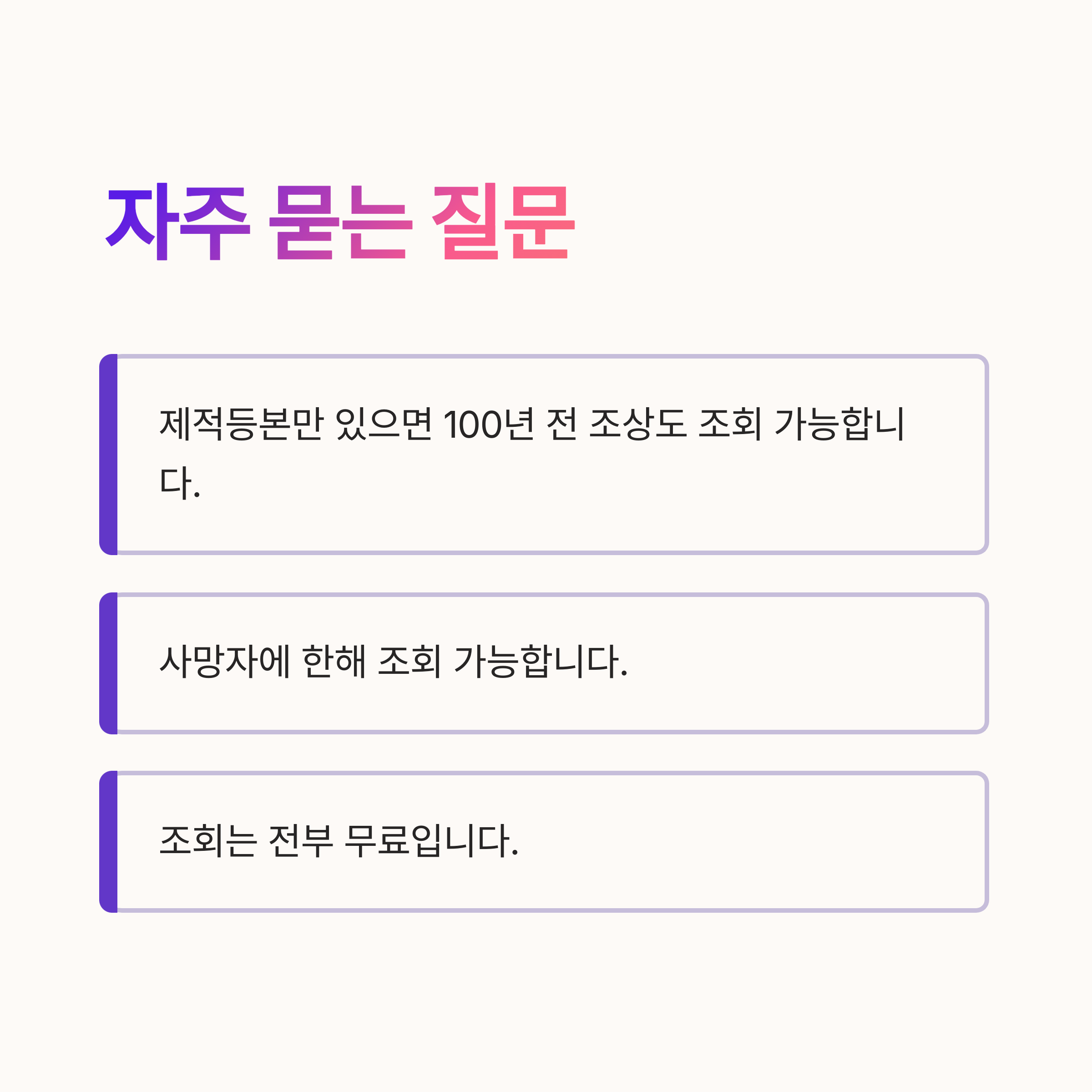→ 네! 제적등본만 있으면 100년 전 조상도 가능합니다.
