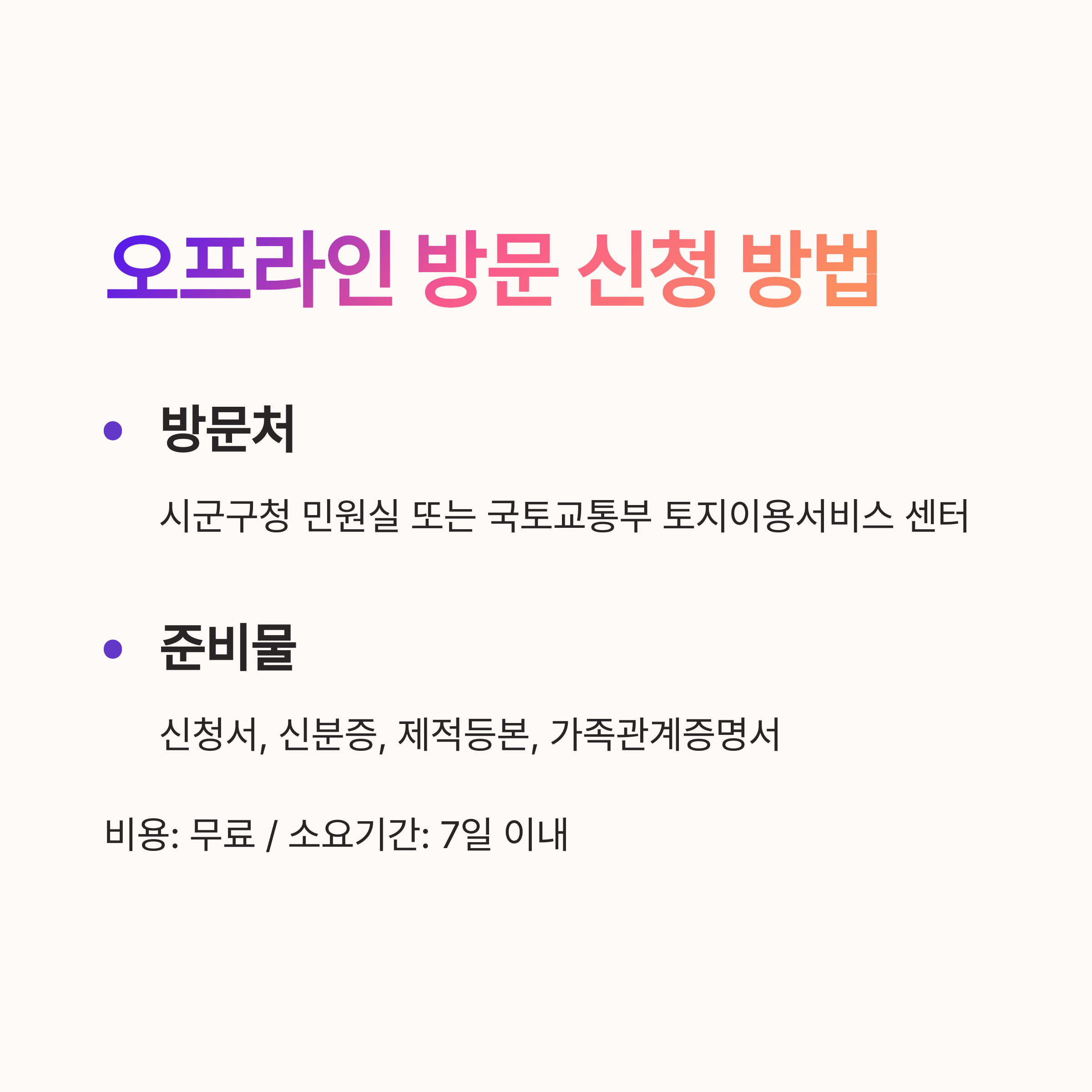 방문처: 전국 시군구청 민원실 또는 국토교통부 토지이용서비스 센터