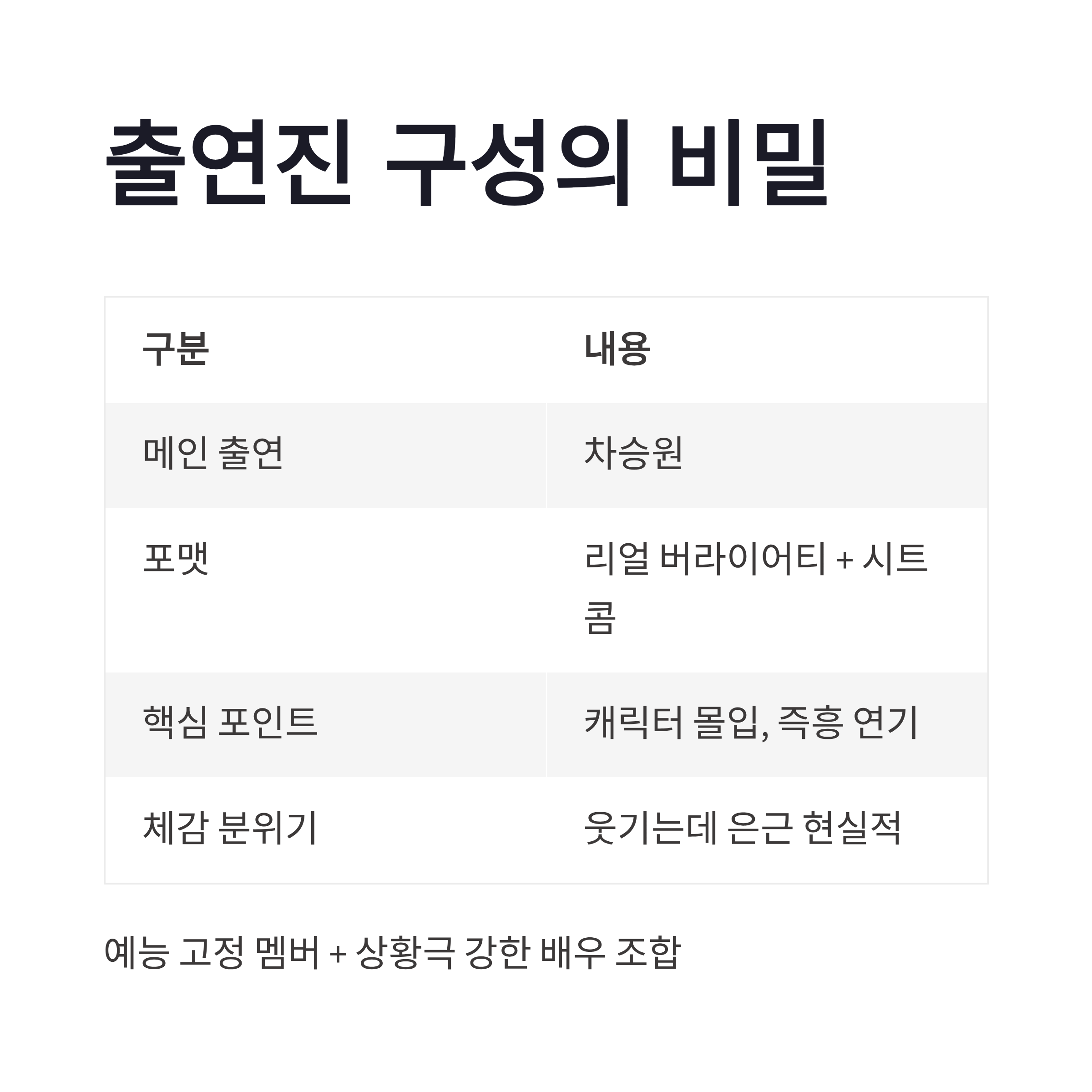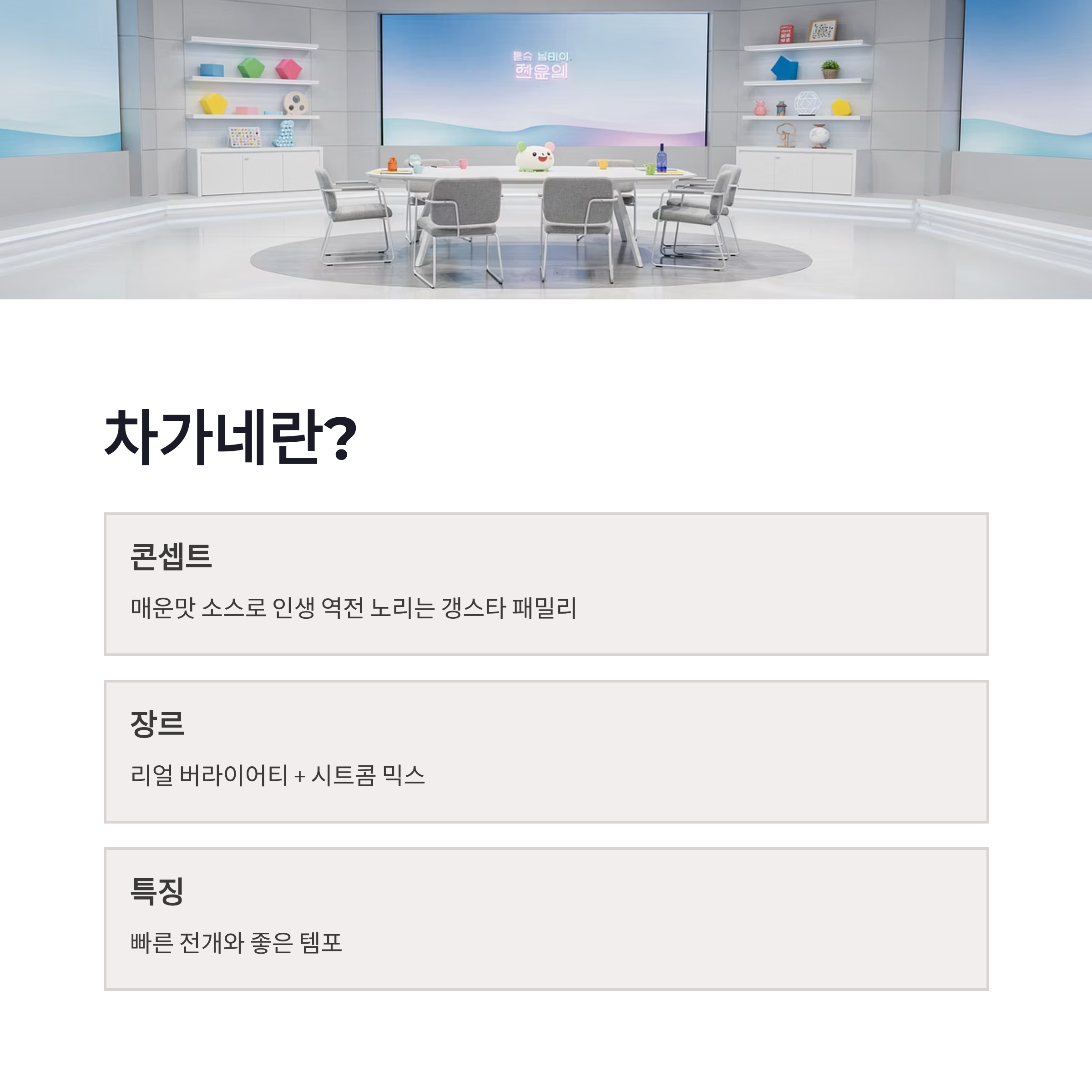 #차가네 #차가네기본정보 #차가네출연진 #차가네방송시간 #차가네OTT #tvN예능 #2026신규예능 #리얼시트콤 #차승원예능 #티빙예능 #요즘볼만한예능 #K매운맛 #갱스타패밀리 #금요일예능 #예능추천