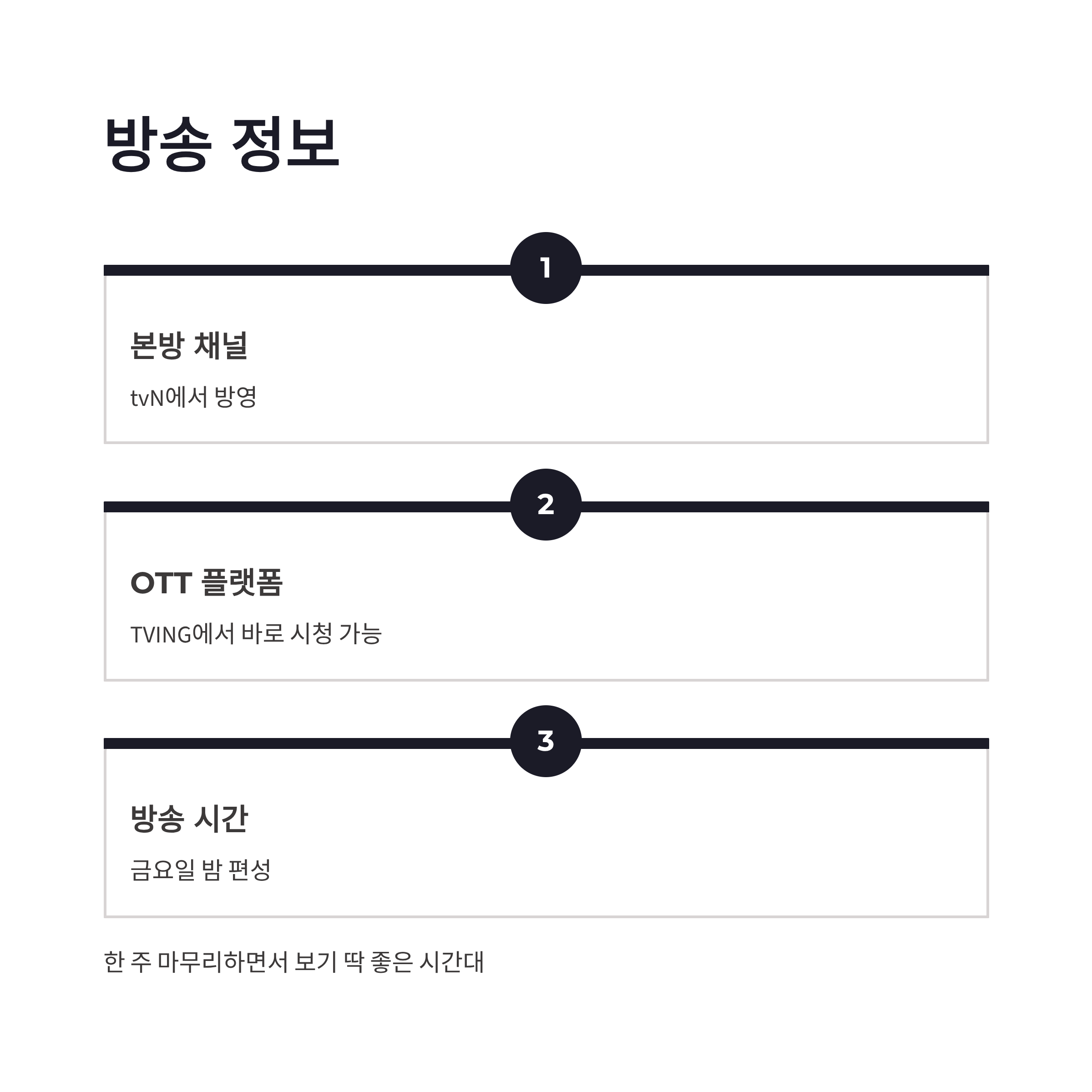 차가네 기본정보에서 절대 빠질 수 없는 게 방송 정보죠. 본방은 차가네로 tvN에서 방영되고, OTT는 TVING에서 바로 이어서 볼 수 있어요. 방송시간은 금요일 밤대 편성이라, 한 주 마무리하면서 보기 딱 좋습니다. 솔직히 하루 끝나고 아무 생각 없이 틀기 좋은 예능이에요. 정주행 부담도 없고, 중간부터 봐도 이해되는 구조라 더 좋았구요.