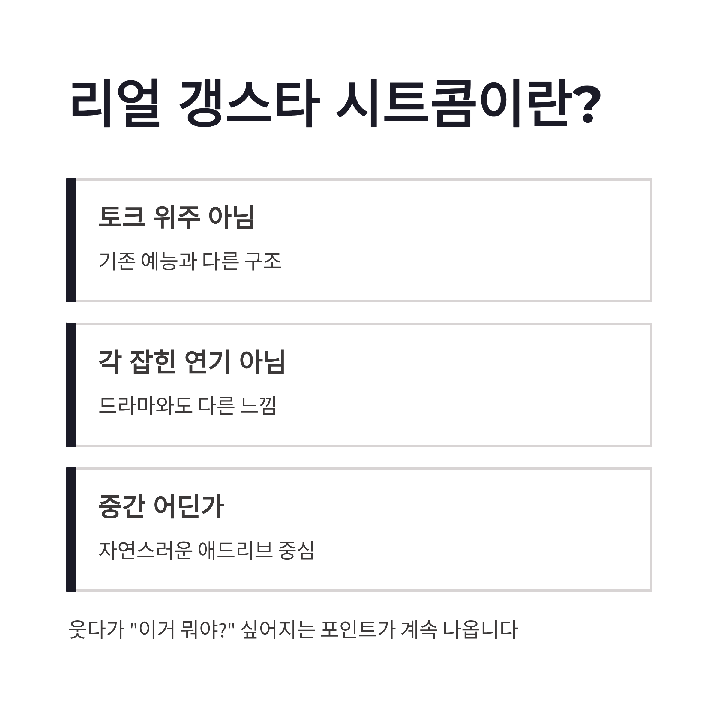 | 포맷 | 리얼 버라이어티 + 시트콤 |