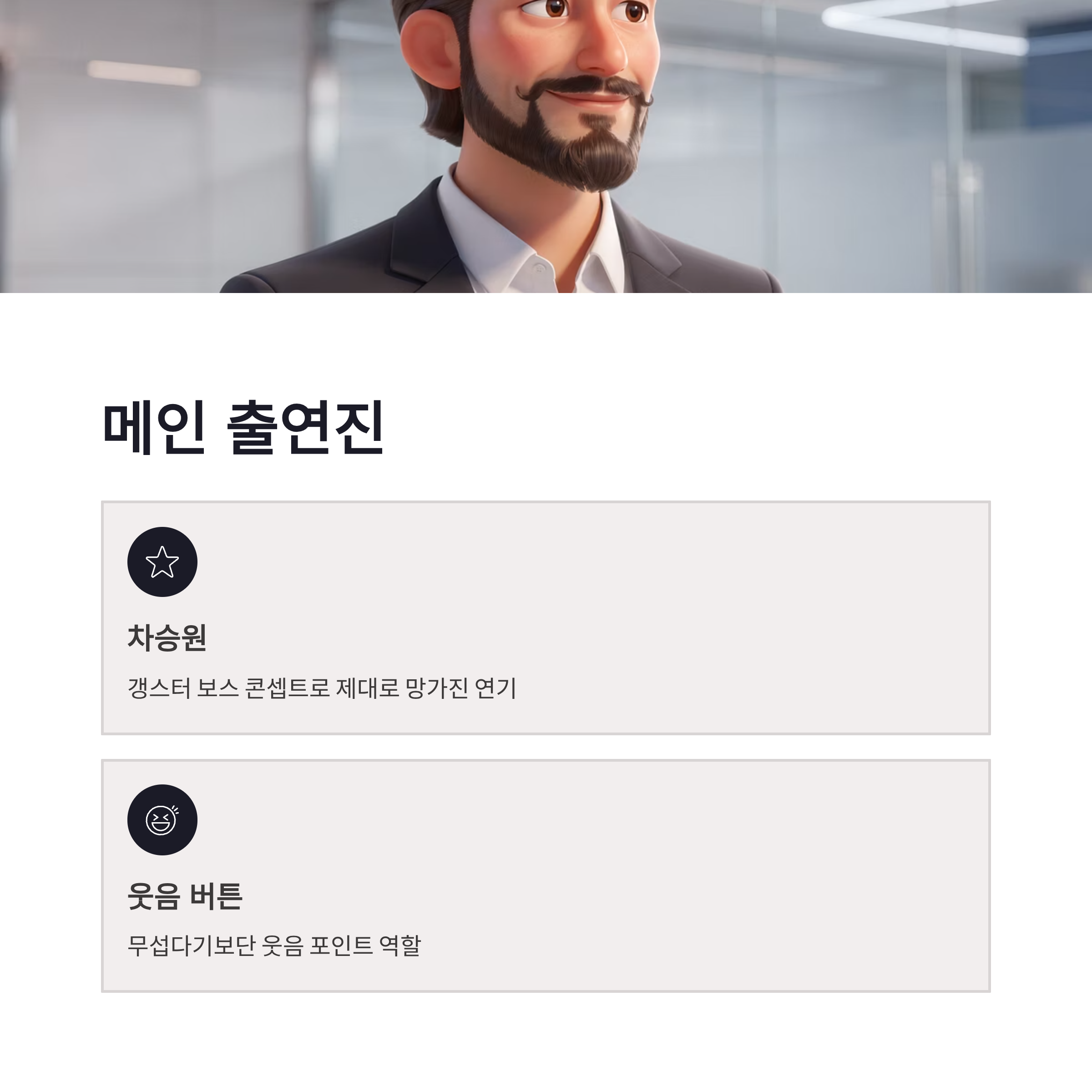 | 핵심 포인트 | 캐릭터 몰입, 즉흥 연기 |