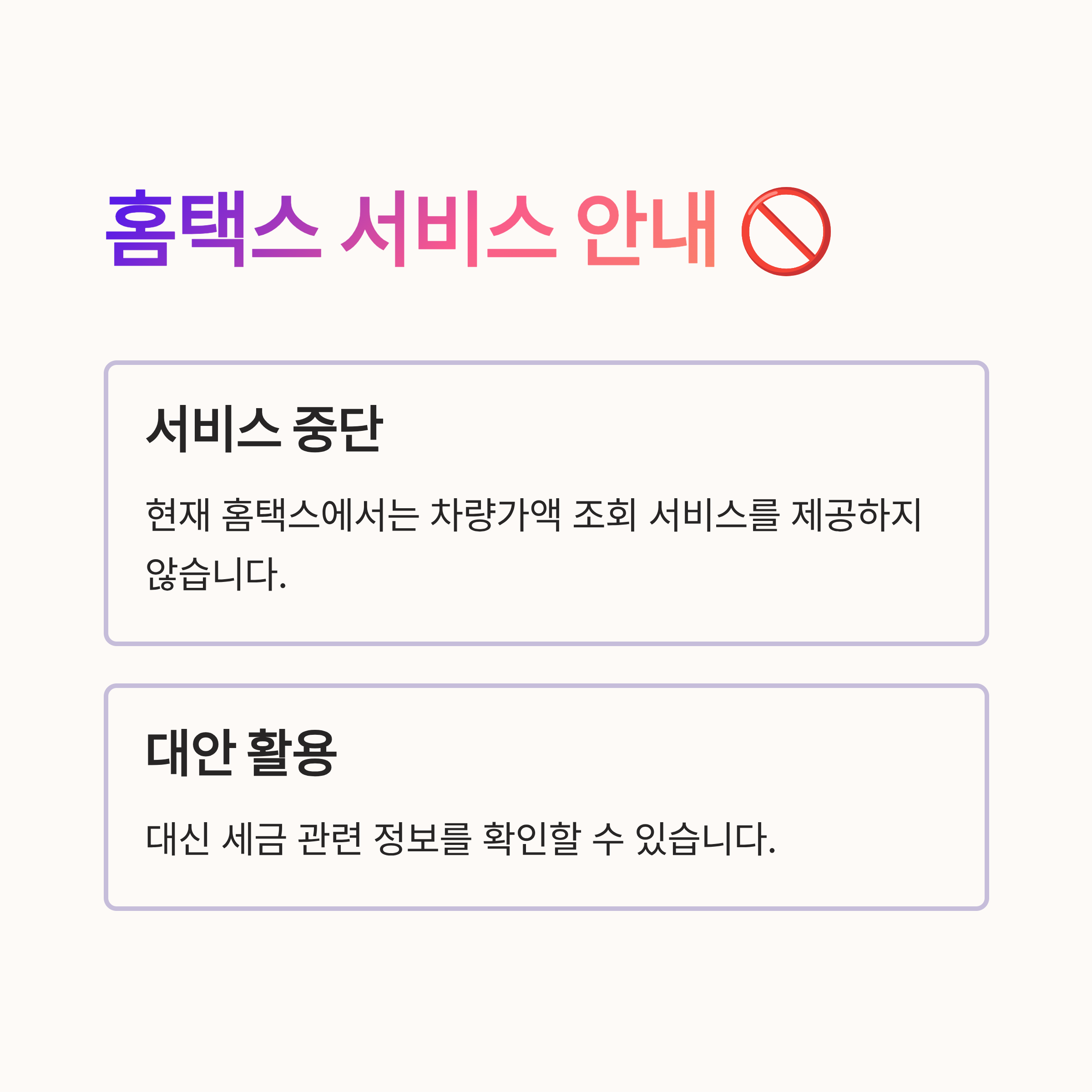 3. 홈택스를 통한 차량가액 조회 방법 (주의: 현재 서비스 미제공) 🚫