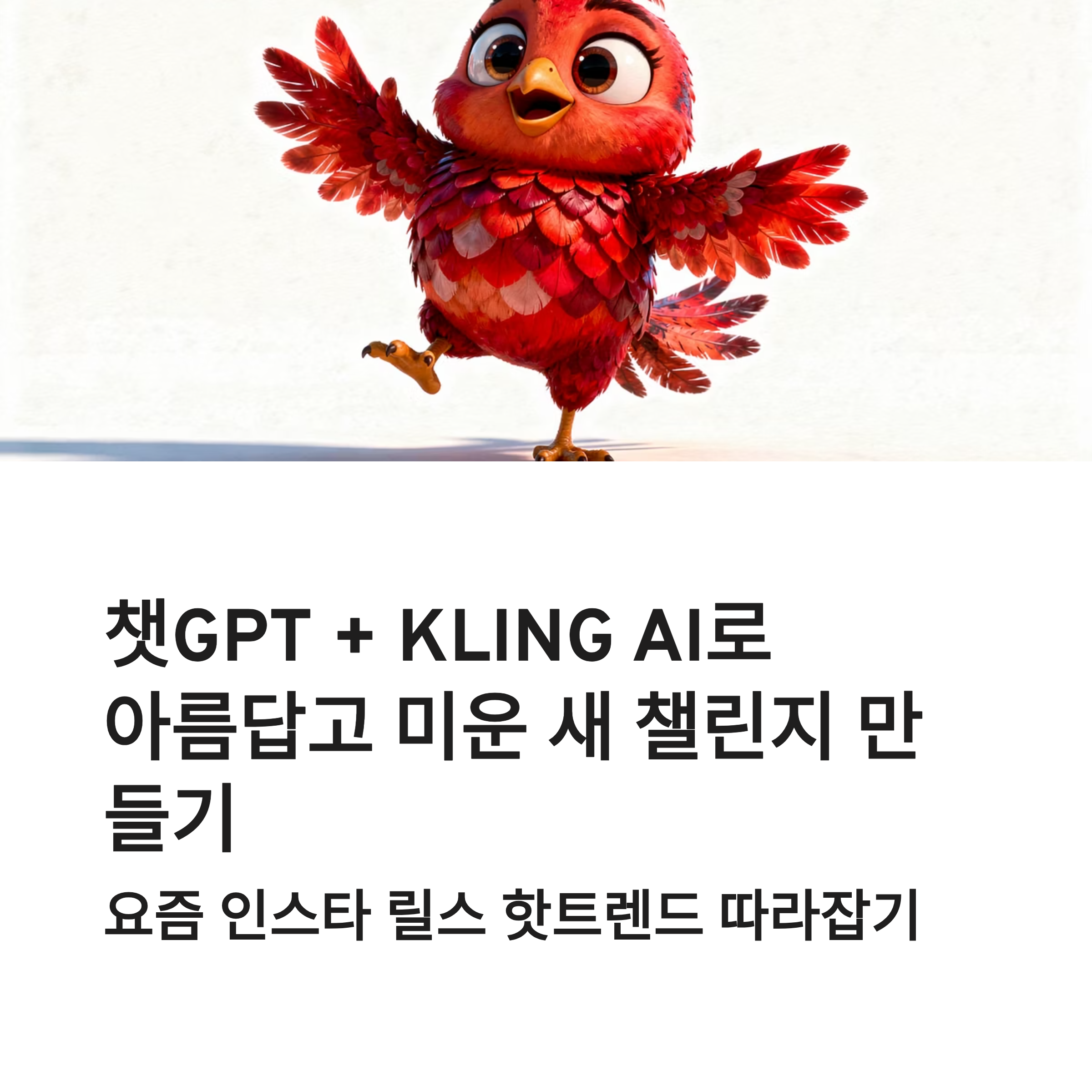 #아름답고미운새챌린지 #챗GPT #KLINGAI #인스타릴스 #AI영상제작 #릴스챌린지 #요즘유행 #숏폼콘텐츠 #AI캐릭터 #귀여운영상 #릴스만들기 #콘텐츠아이디어 #AI툴 #트렌드릴스 #집에서하는릴스