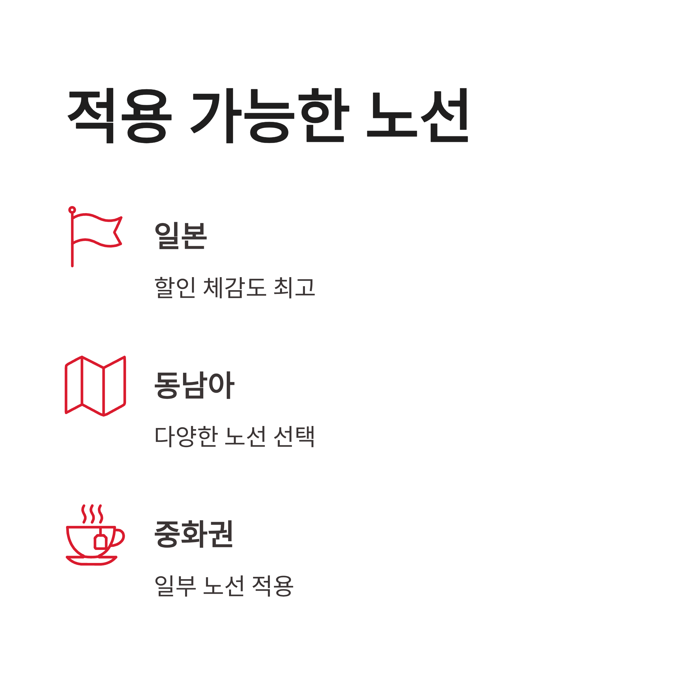 | 적용 노선 | 일본, 동남아, 중화권 일부 |