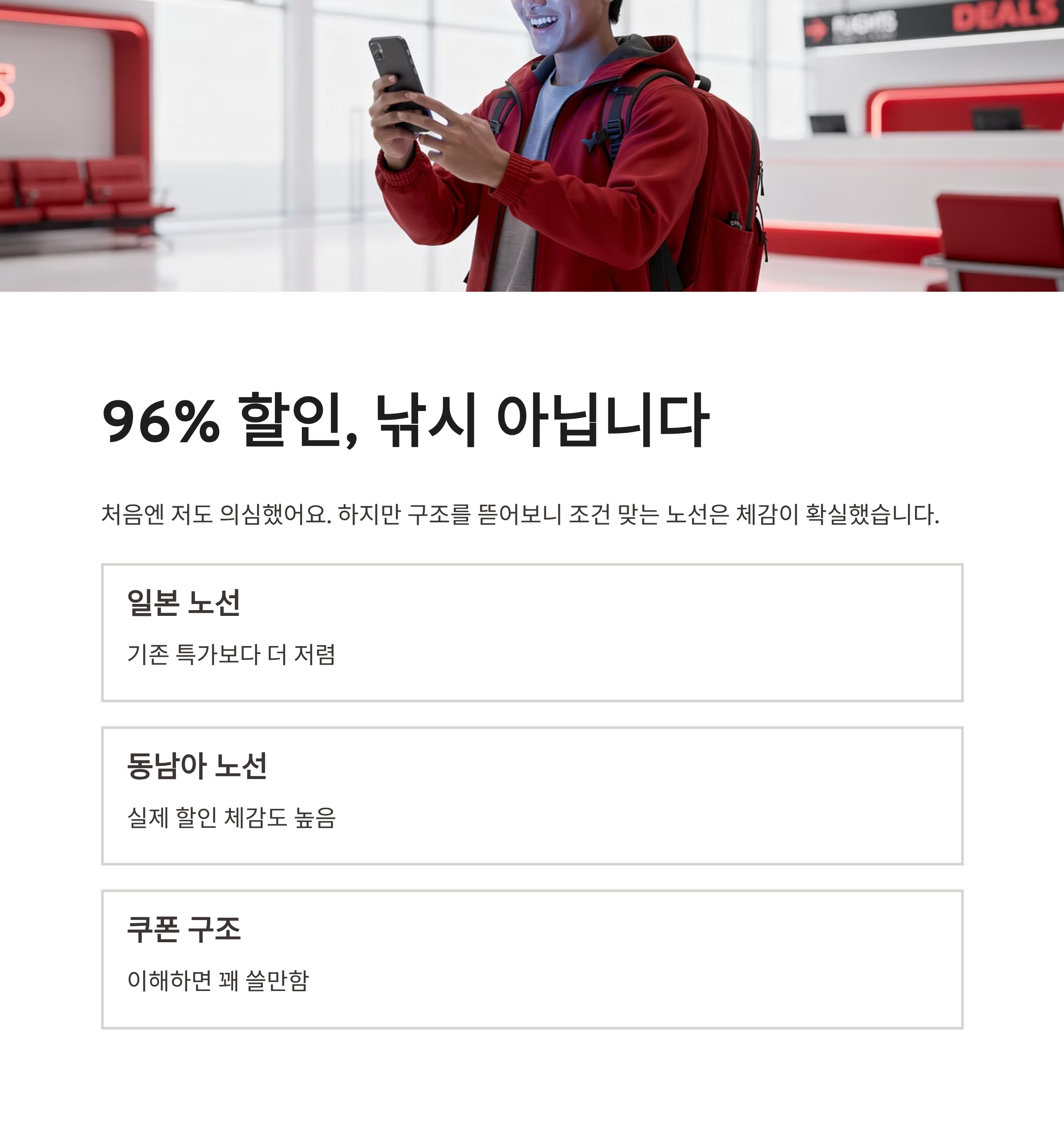 | 최대 할인율 | 최대 96% (일부 노선 한정) |