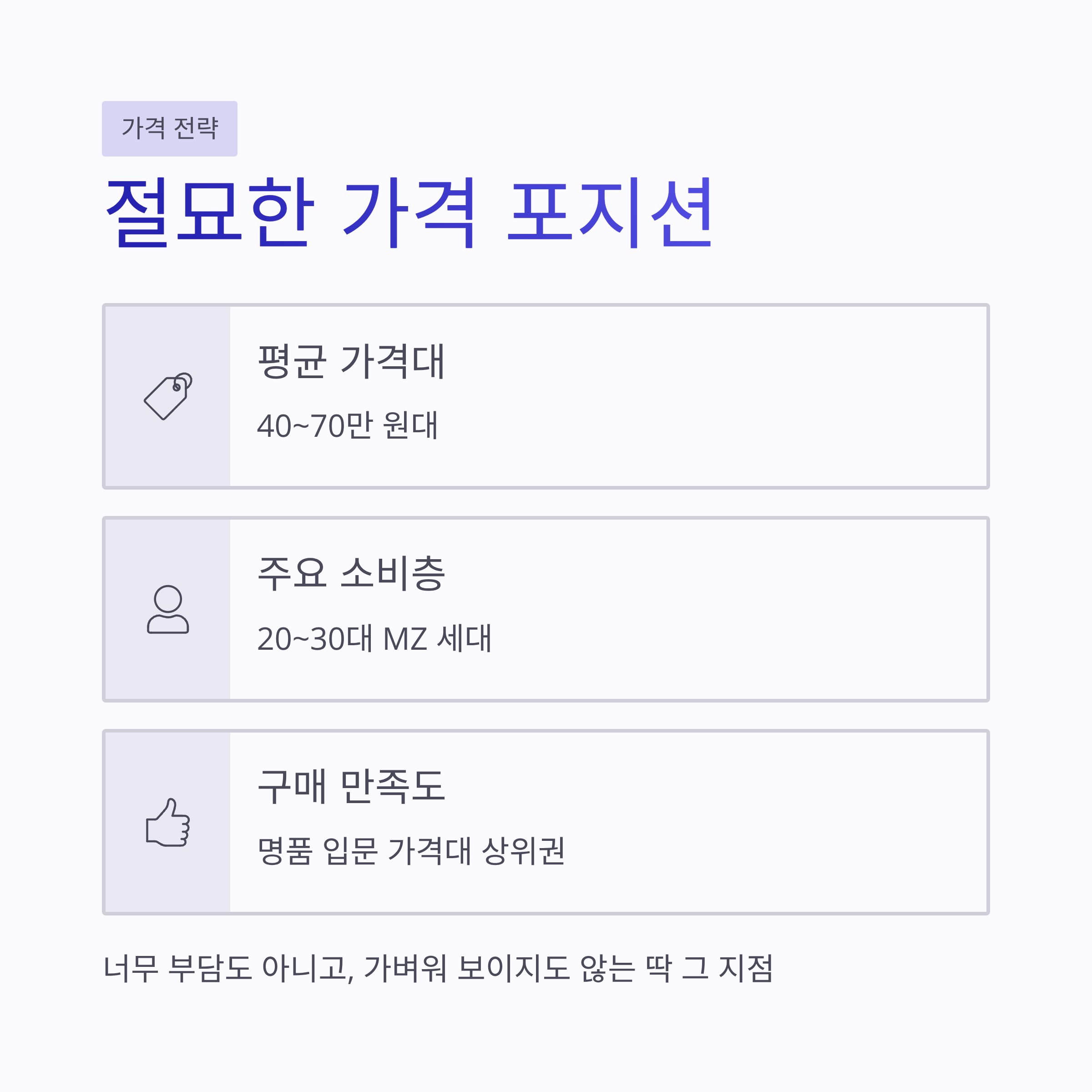 | 인기 이유 | 디자인 대비 가격 안정성 |