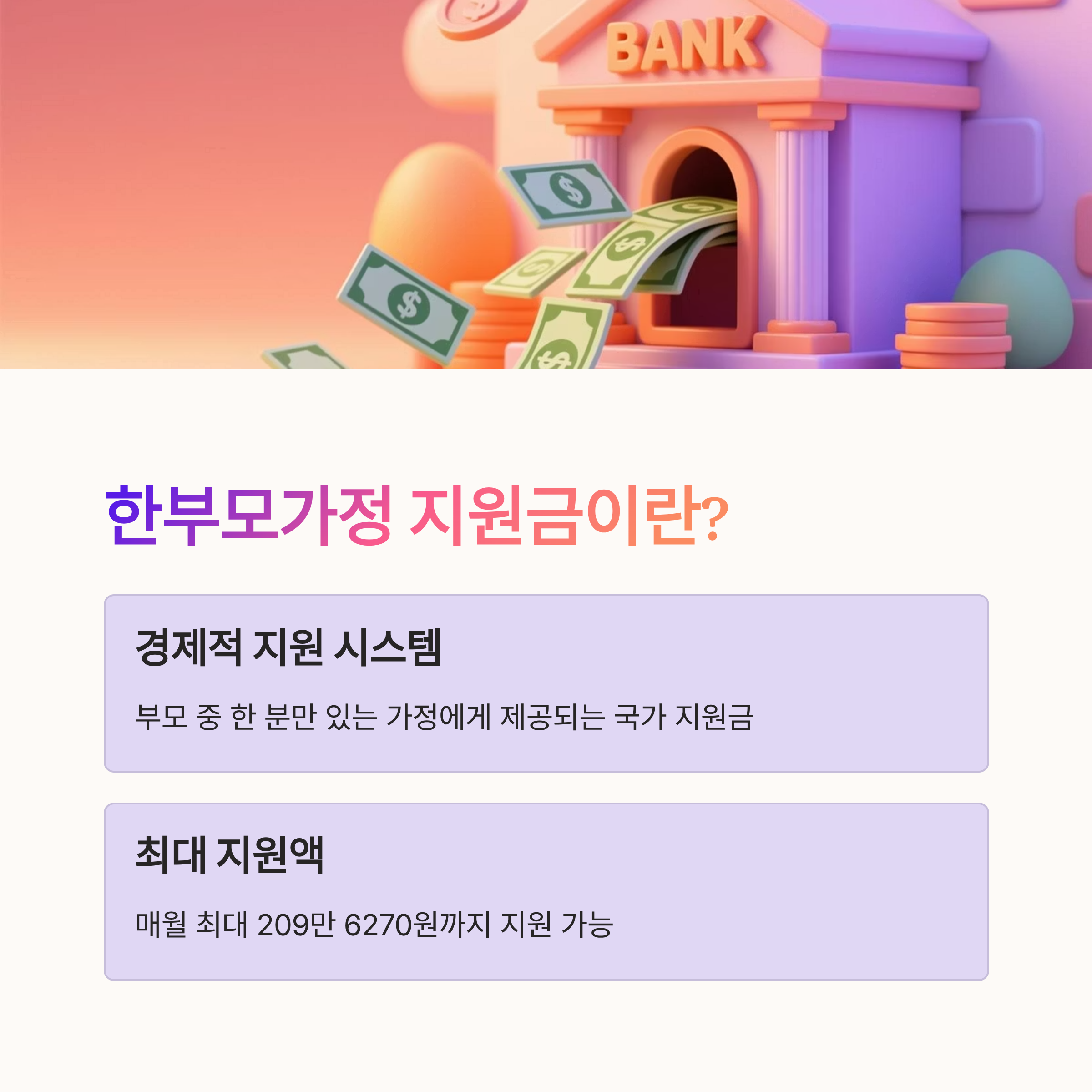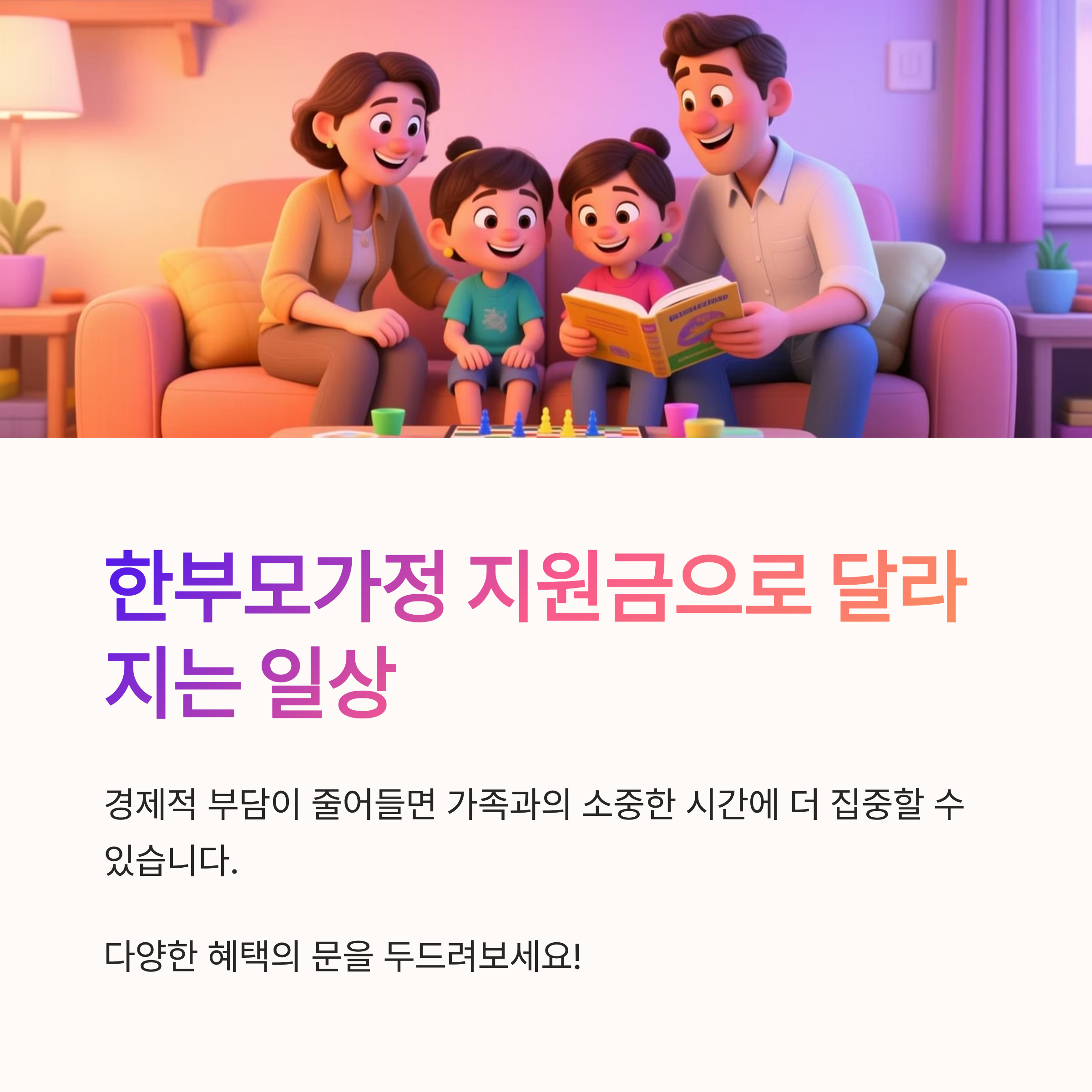 여러분 안녕하신가용~? 오늘은 한부모가정을 위한 지원금에 관해 알아볼 시간이 왔습니다! 많은 분들이 고민하고 있는 경제적 문제, 조금이라도 덜어드리기 위해 마련된 이 혜택을 꼭 챙기시길 바랄게요. 한부모가정 지원금은 무엇인지, 신청 조건과 방법, 필요한 서류까지 꼼꼼하게 체크해봤습니다. 짠!😊