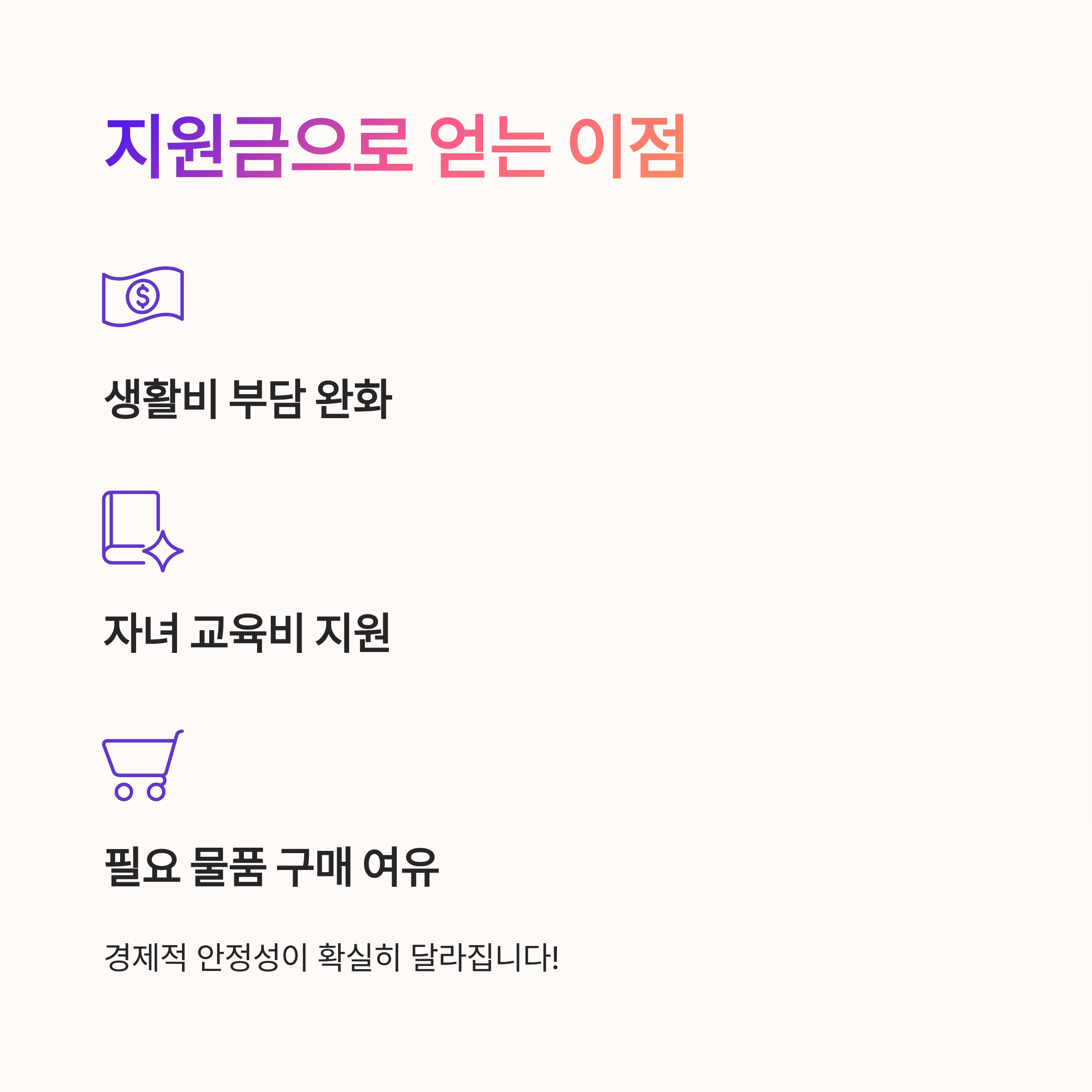 이제 지원금을 받으면 좋은 점은 뭐가 있을까용~? 😉 정말 많은 이점들이 있어요!