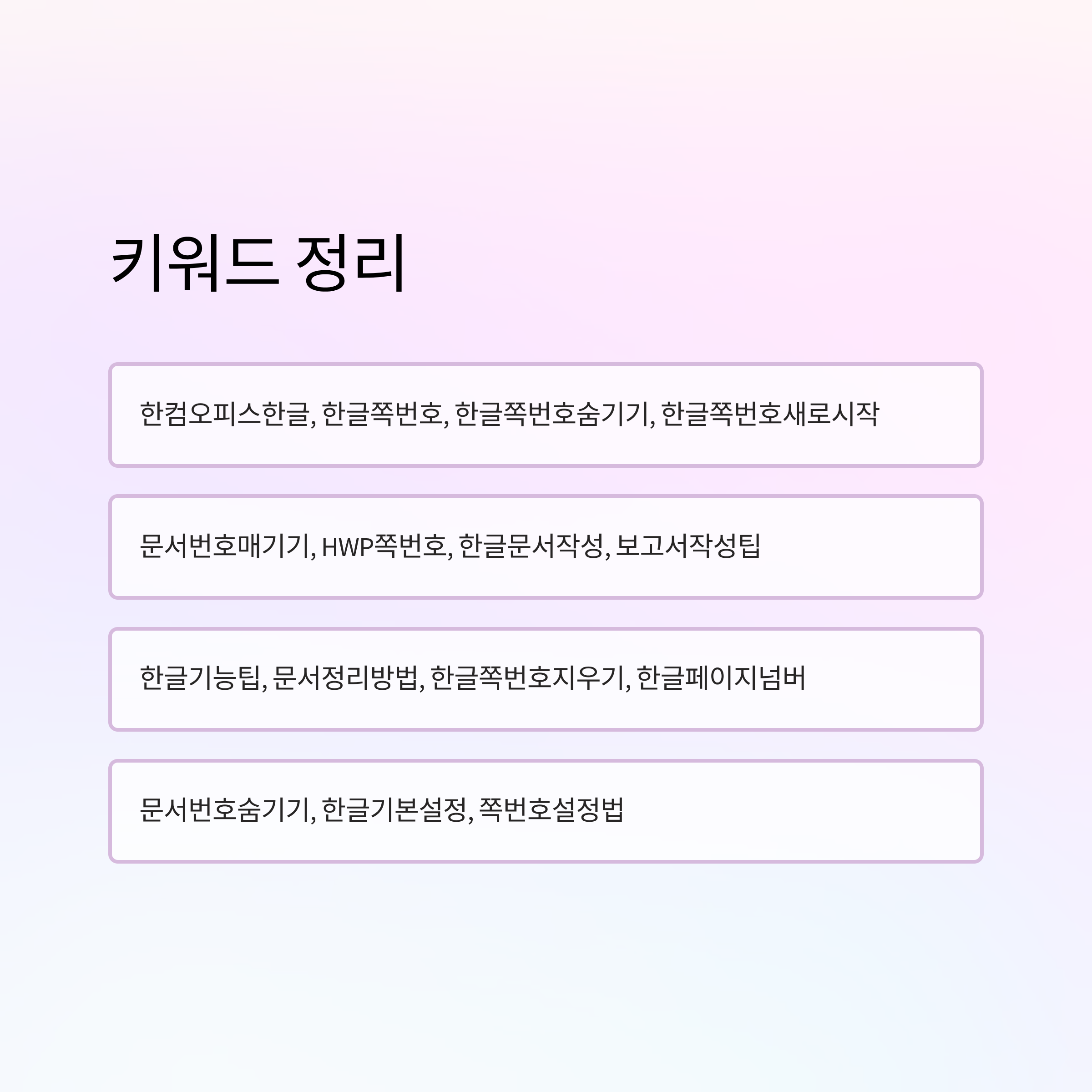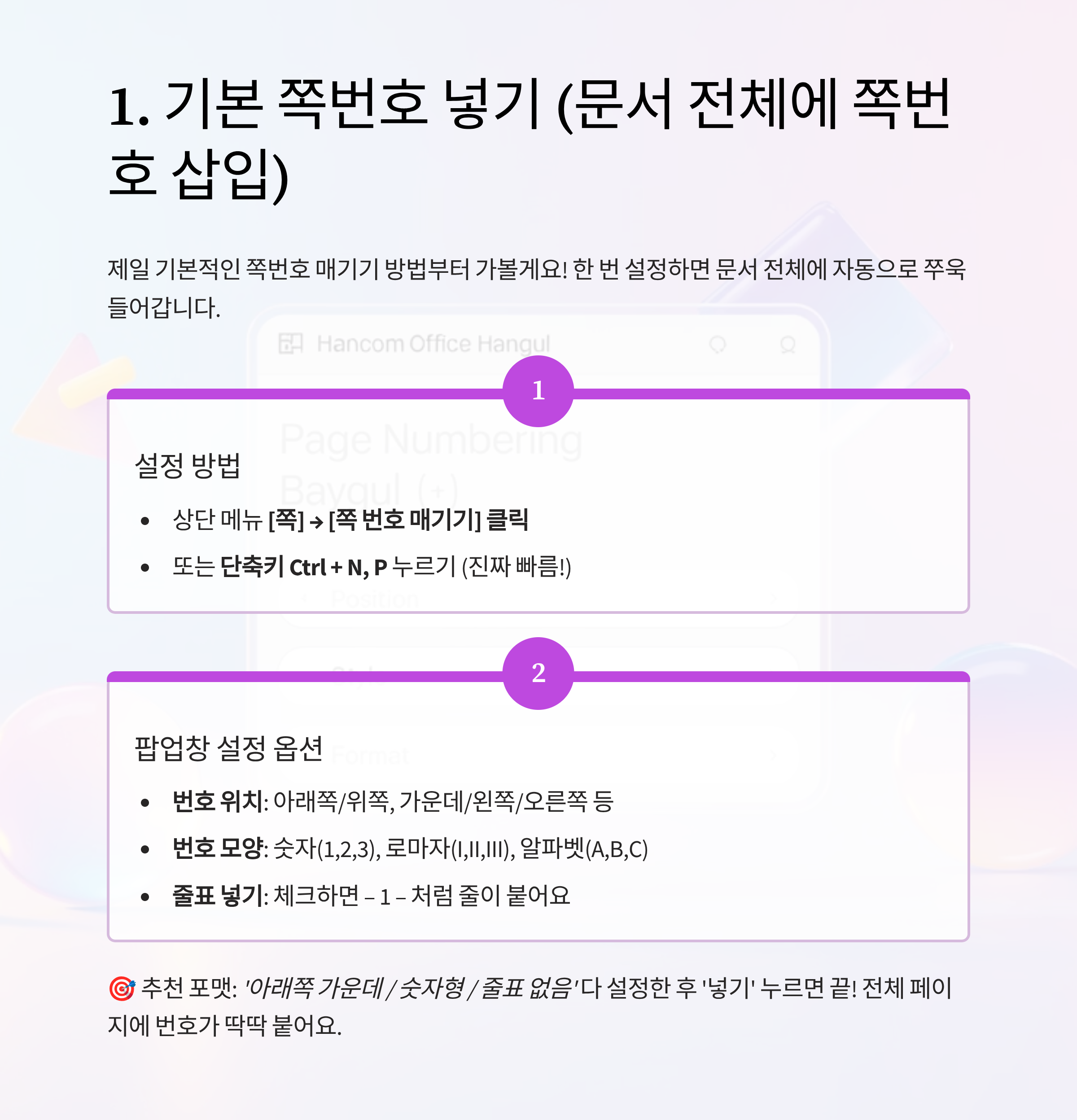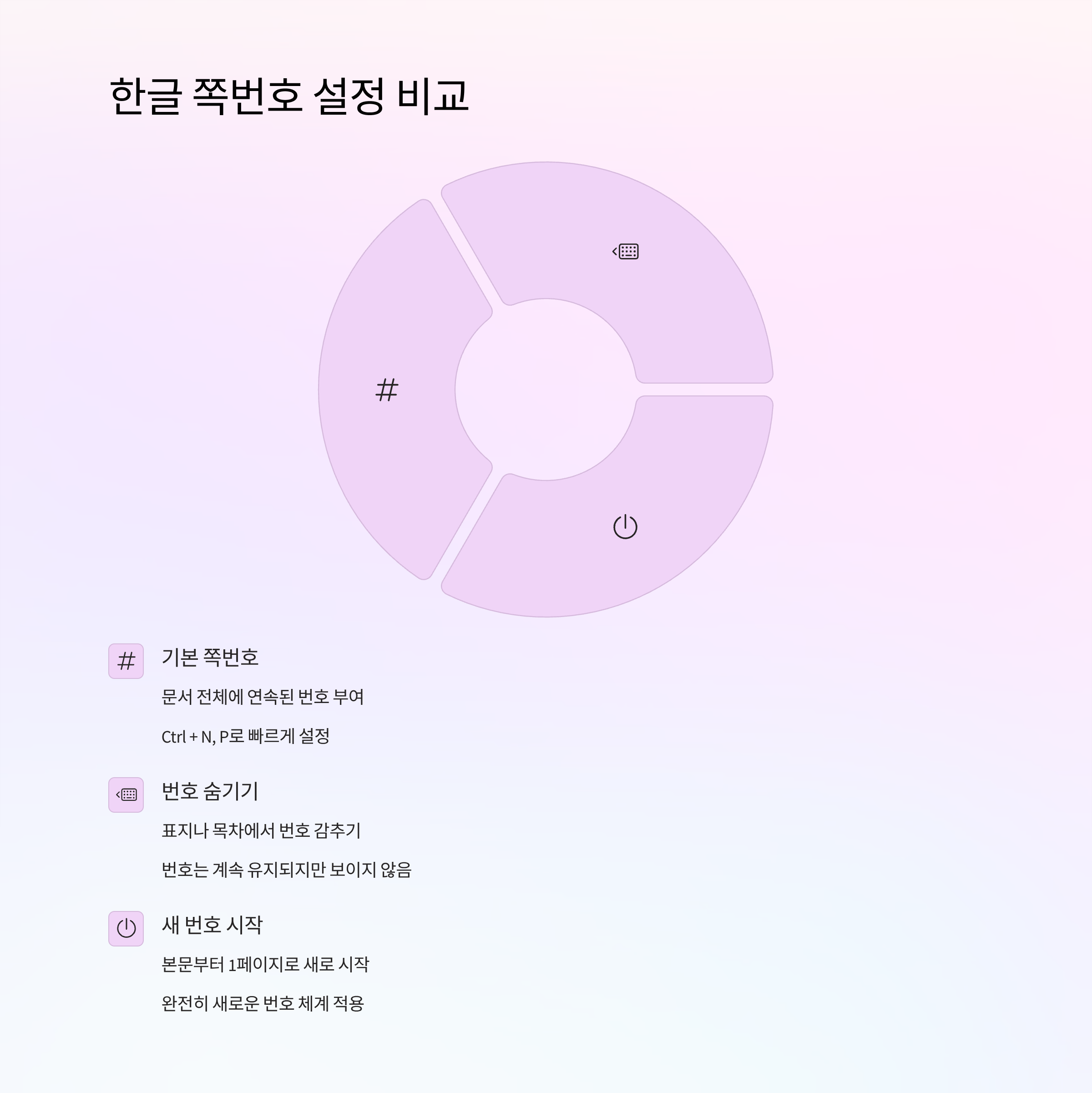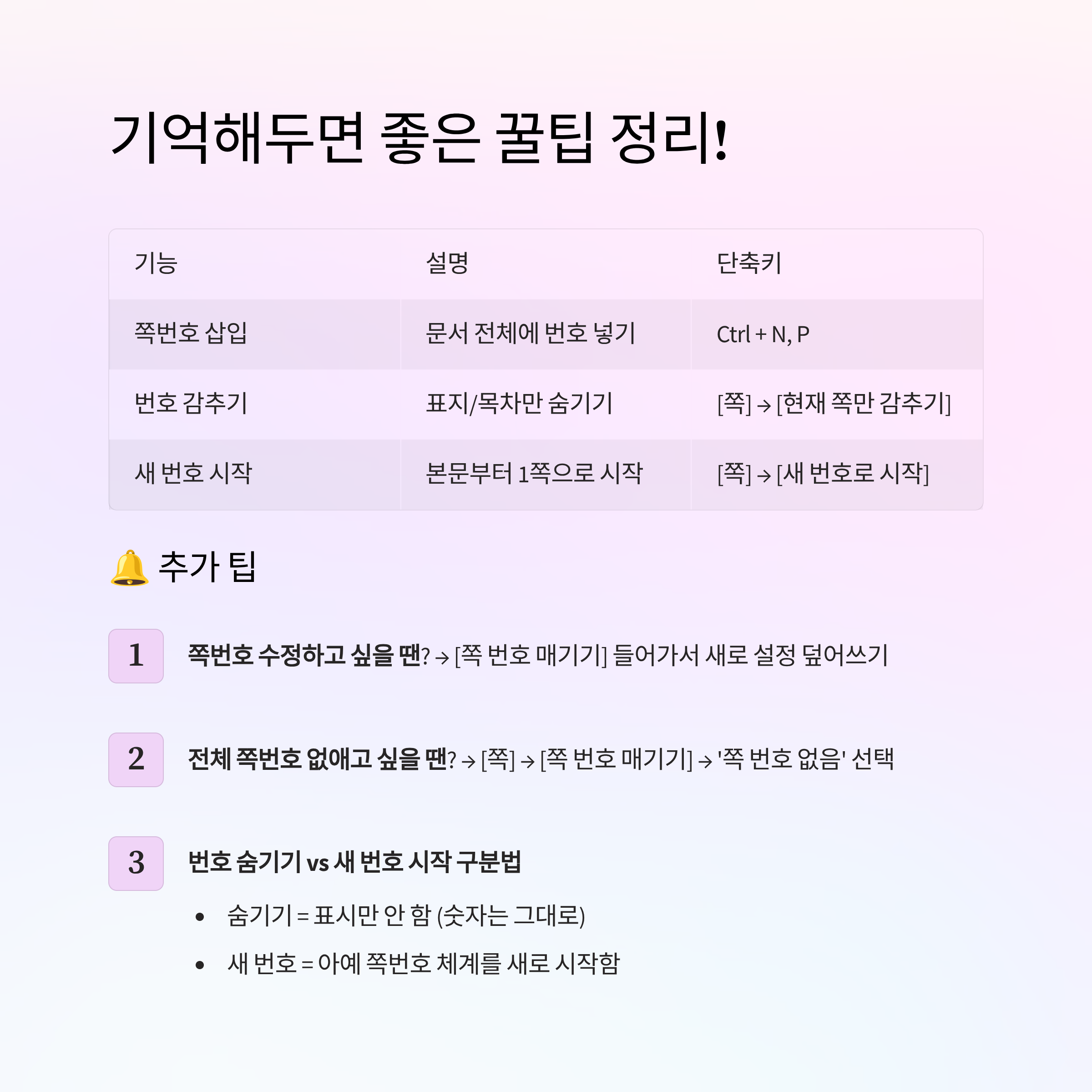 한컴오피스 한글의 쪽번호 기능은 단순한 숫자 넣기가 아니라, 문서 구조를 보여주는 중요한 요소입니다.
