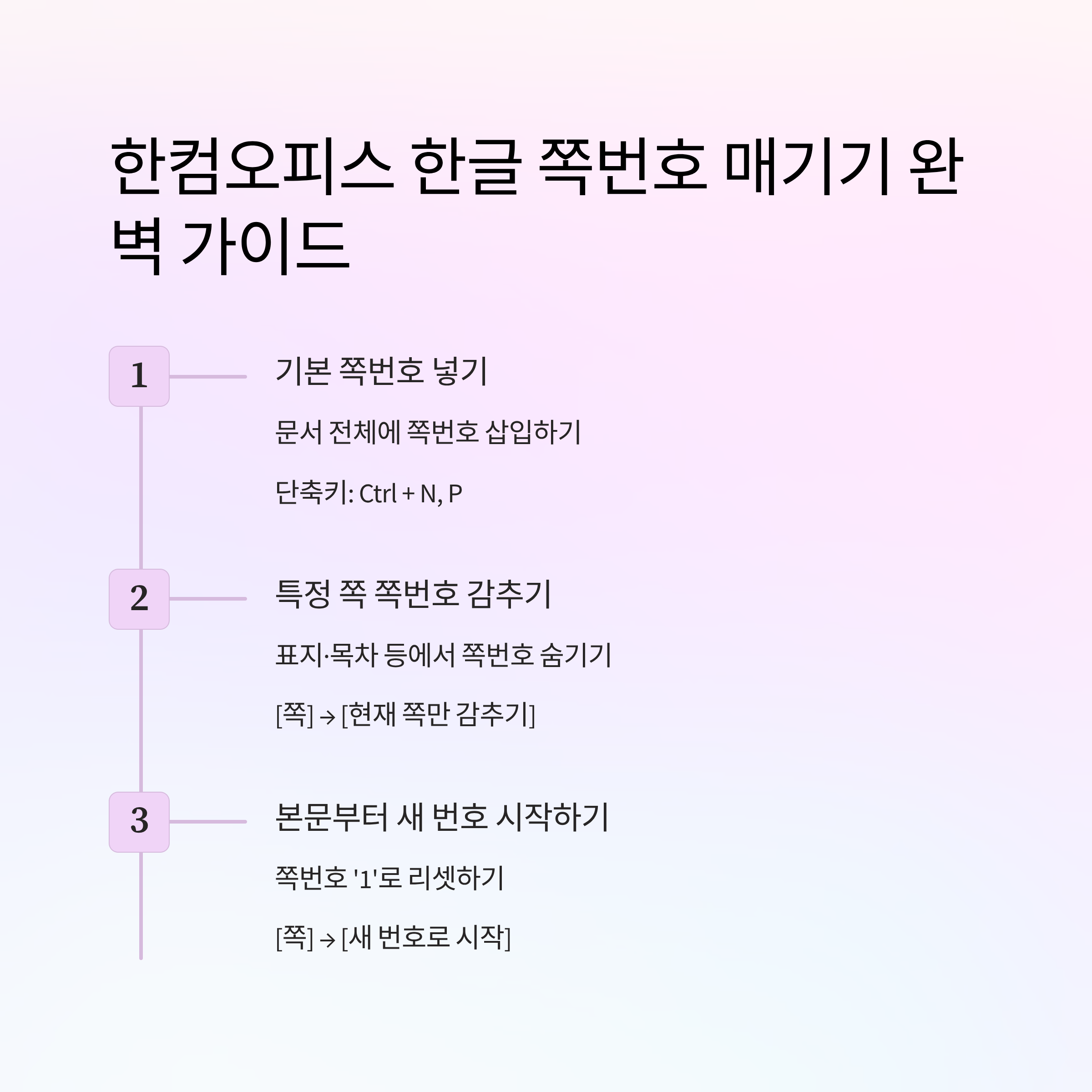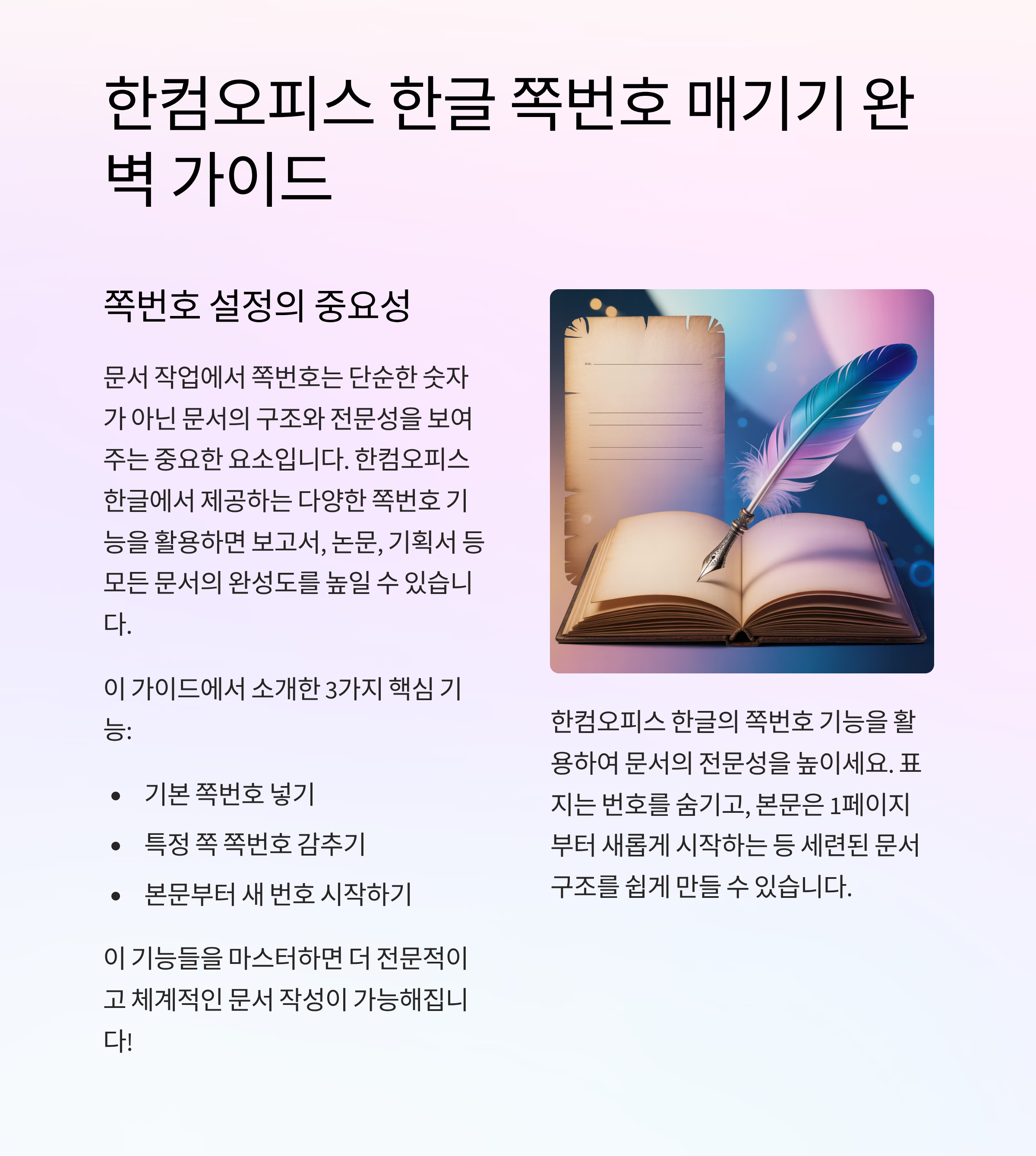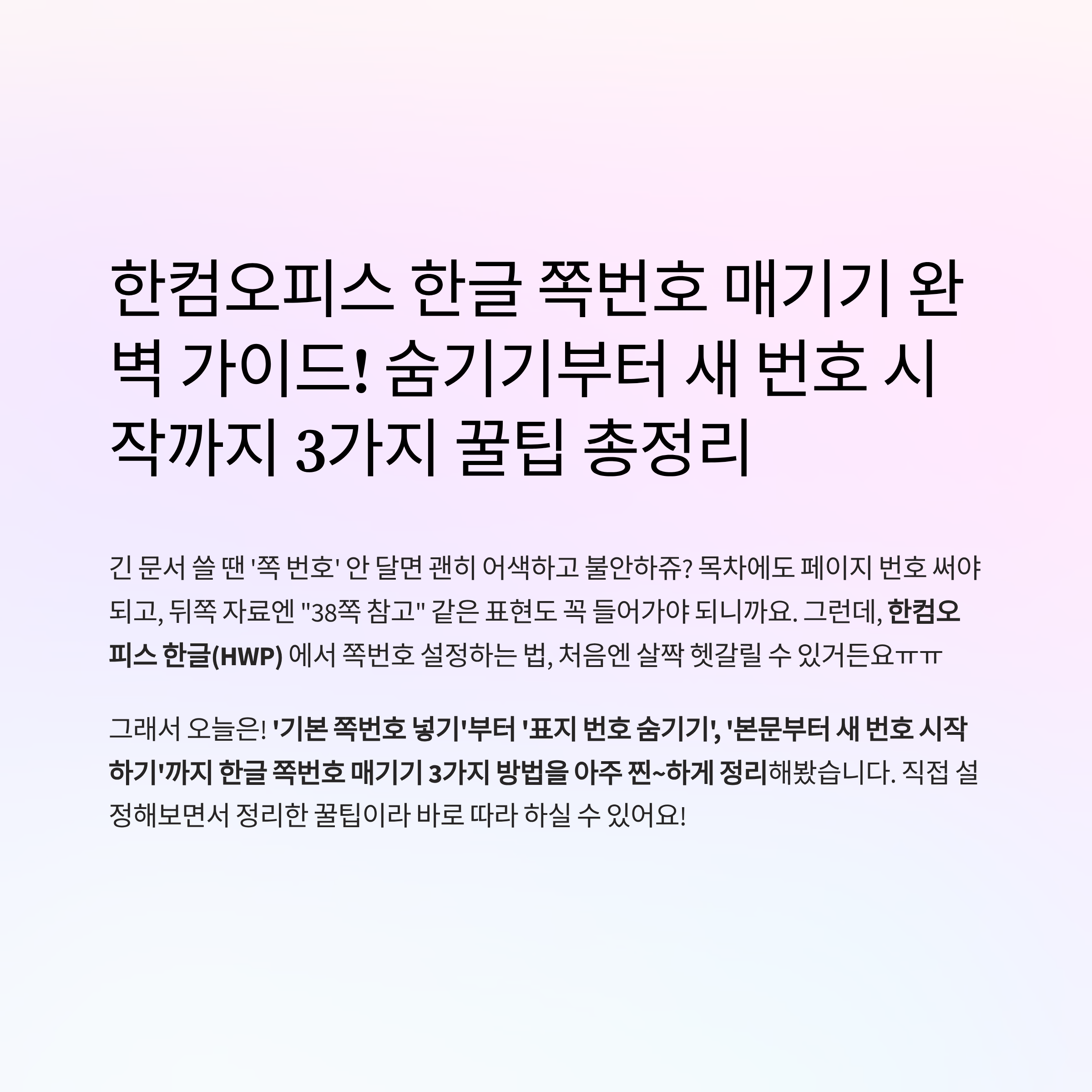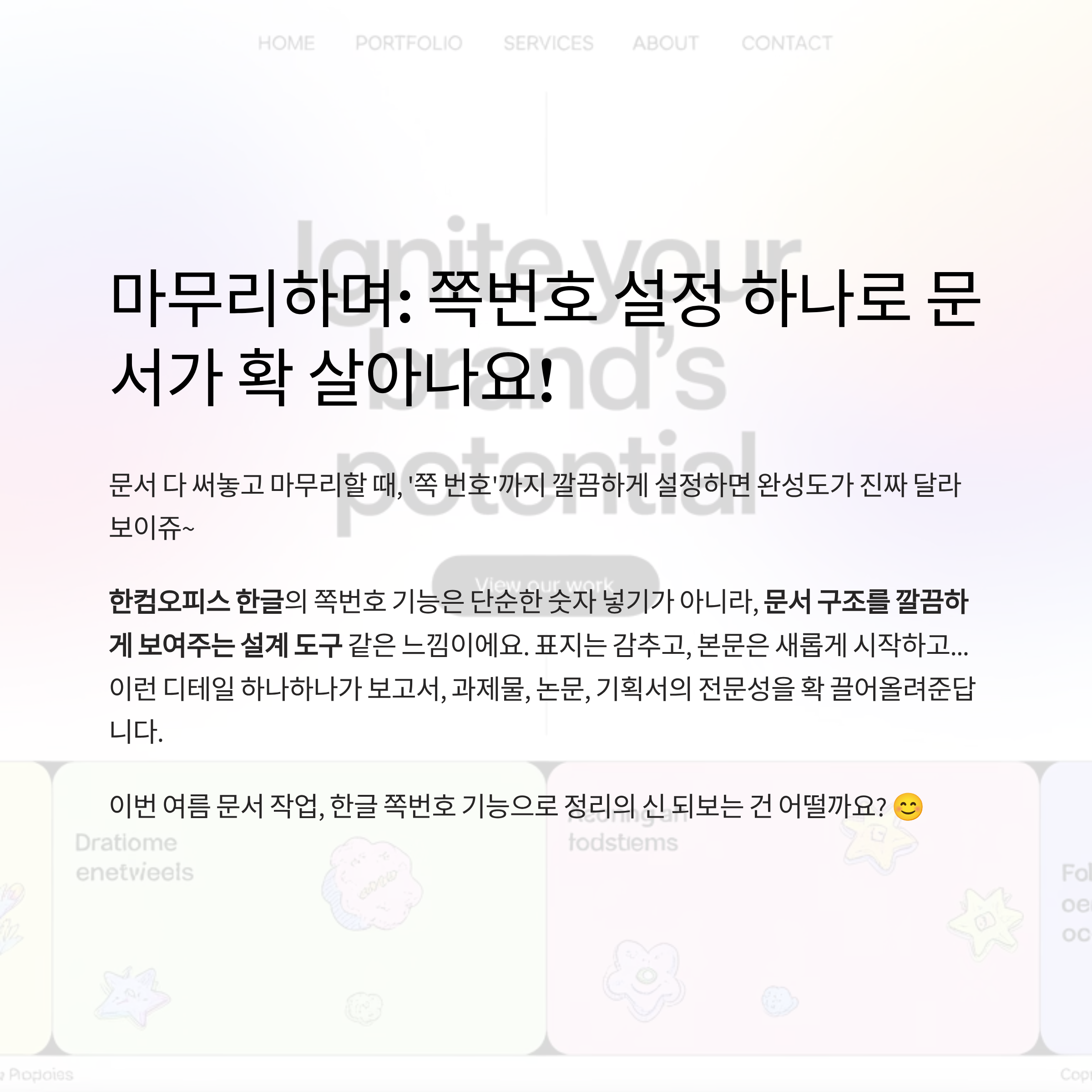 한컴오피스 한글의 쪽번호 기능은 단순한 숫자 넣기가 아니라, 문서 구조를 보여주는 중요한 요소입니다.