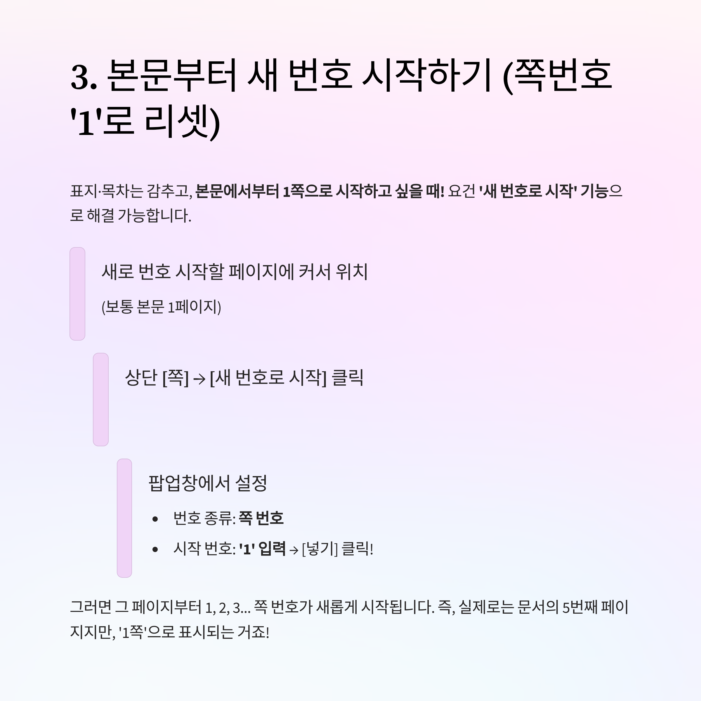 3. 본문부터 새 번호 시작하기 (쪽번호 ‘1’로 리셋)