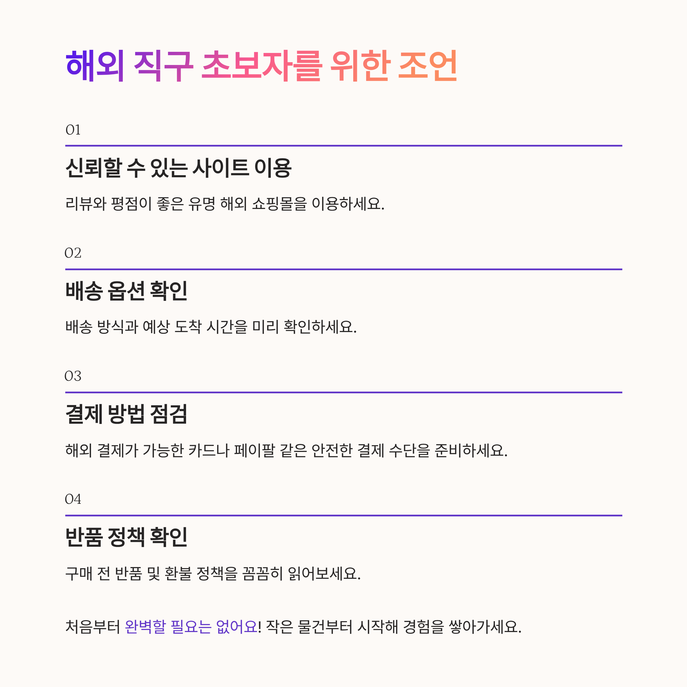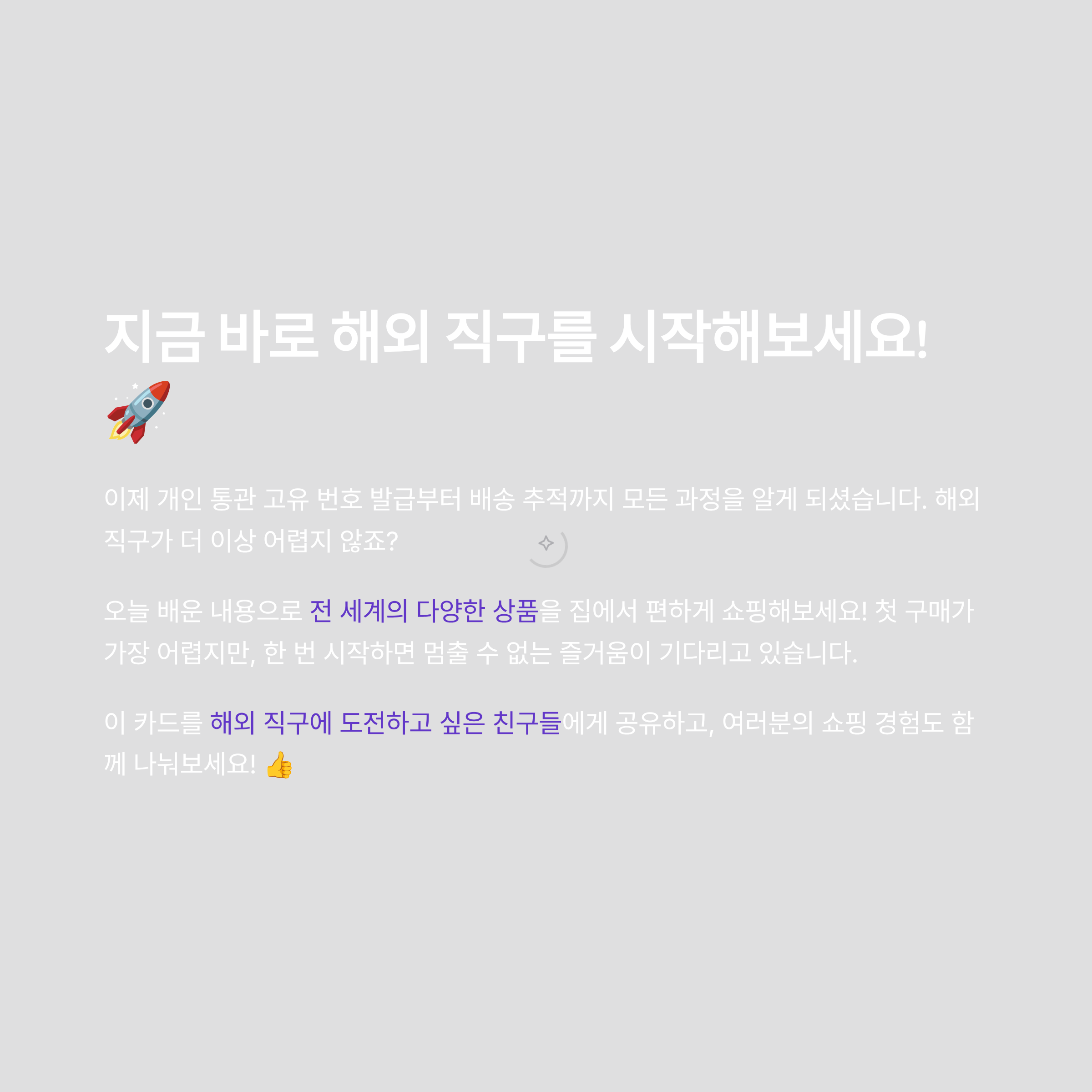이 포스팅을 통해 이젠 어려운 해외 직구도 쉽게 할 수 있다는 자신감을 가지셨으면 좋겠습니다! 해외 직구, 다들 함께 도전해 봅시다! 🛍️