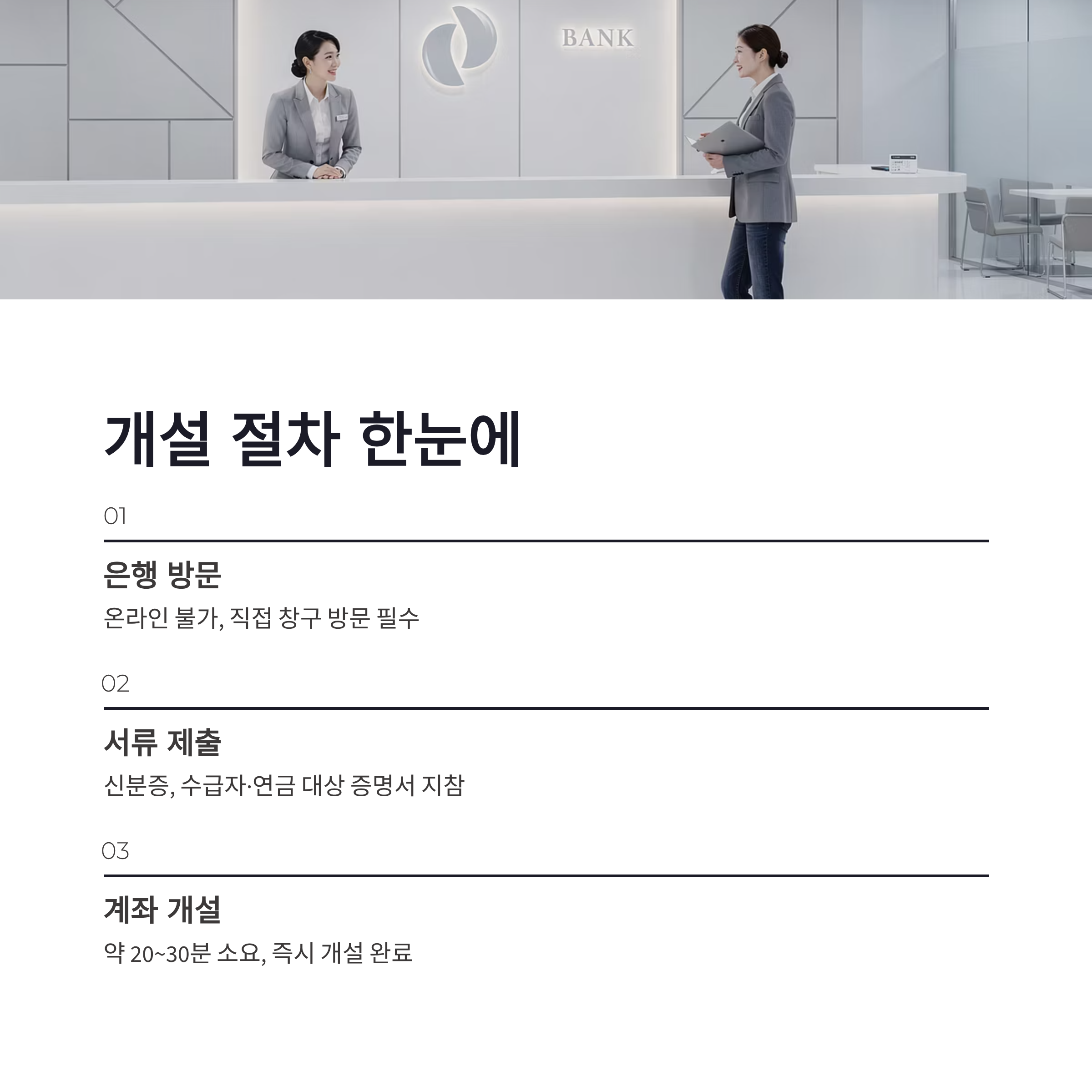 행복지킴이통장 개설 방법은 생각보다 단순했어요. 온라인으로는 거의 안 되고, 직접 은행 창구 방문이 기본입니다. 제가 갔을 때 안내받은 흐름을 표로 정리해보면 요렇습니다.