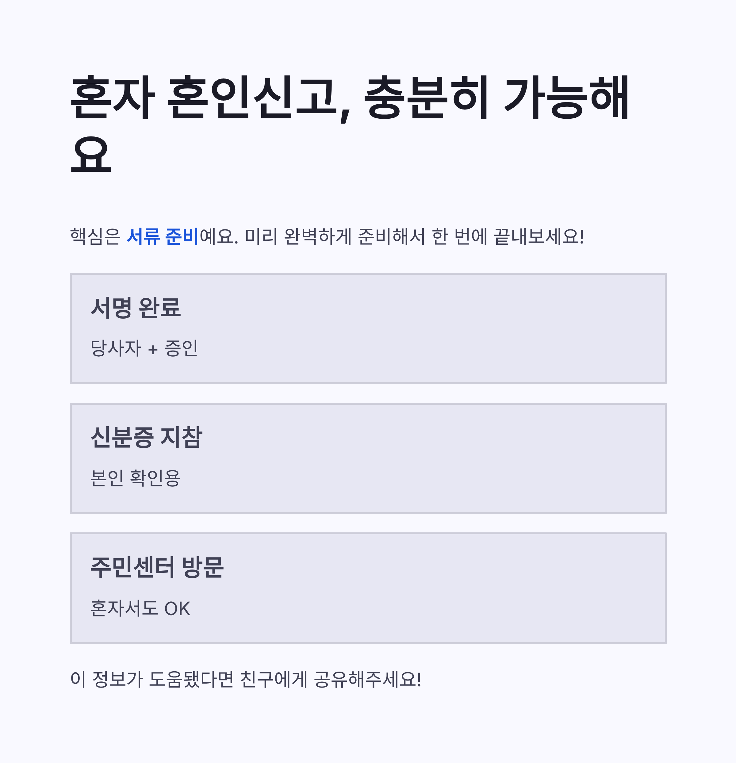 혼자 혼인신고 가능한가요? 준비만 되면 OK