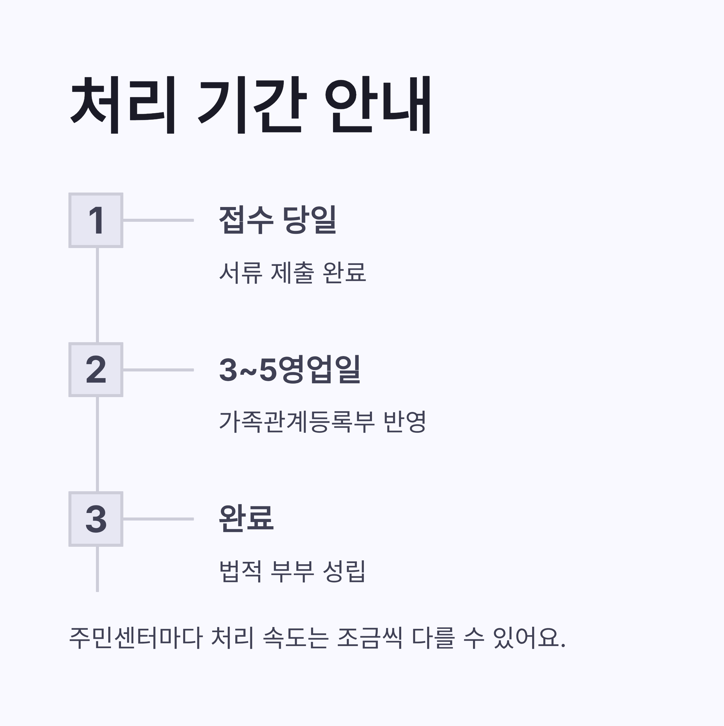 2025년 기준으로도 혼자 혼인신고 절차 자체는 크게 달라진 건 없어요. 다만 주민센터마다 접수 시간이나 처리 속도는 조금씩 다르더라구요. 접수 후 바로 가족관계등록부에 반영되는 건 아니고, 보통 3~5영업일 정도 걸렸어요. 장점은 기다림 없이 조용히 처리 가능하다는 점! 단점은… 서류 하나라도 빠지면 다시 와야 한다는 거죠 ㅠㅠ 특히 증인 서명 누락, 날짜 미기재 이거 진짜 많이 실수한대요. 미리 두 번 확인 추천합니다!