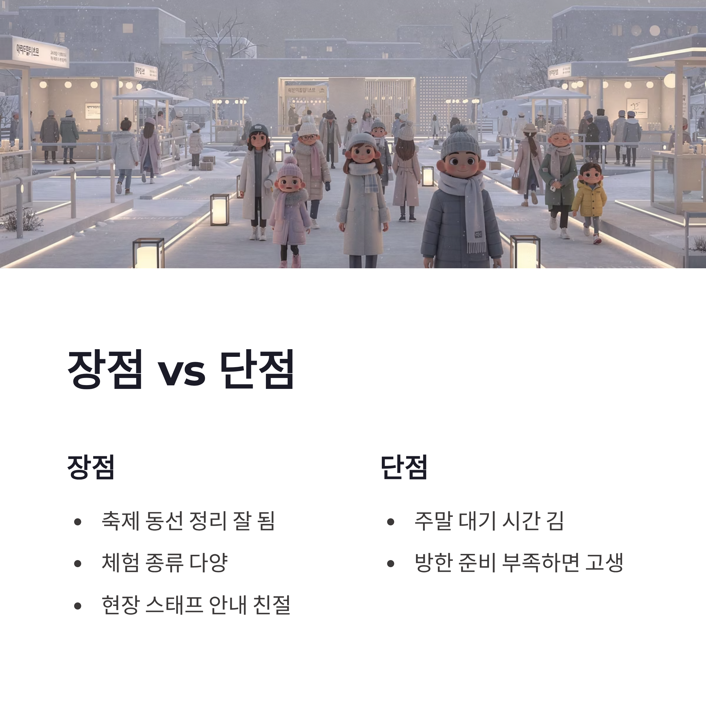 | 눈·얼음 체험 | 눈썰매, 조각 전시 | 가족 단위 추천 |