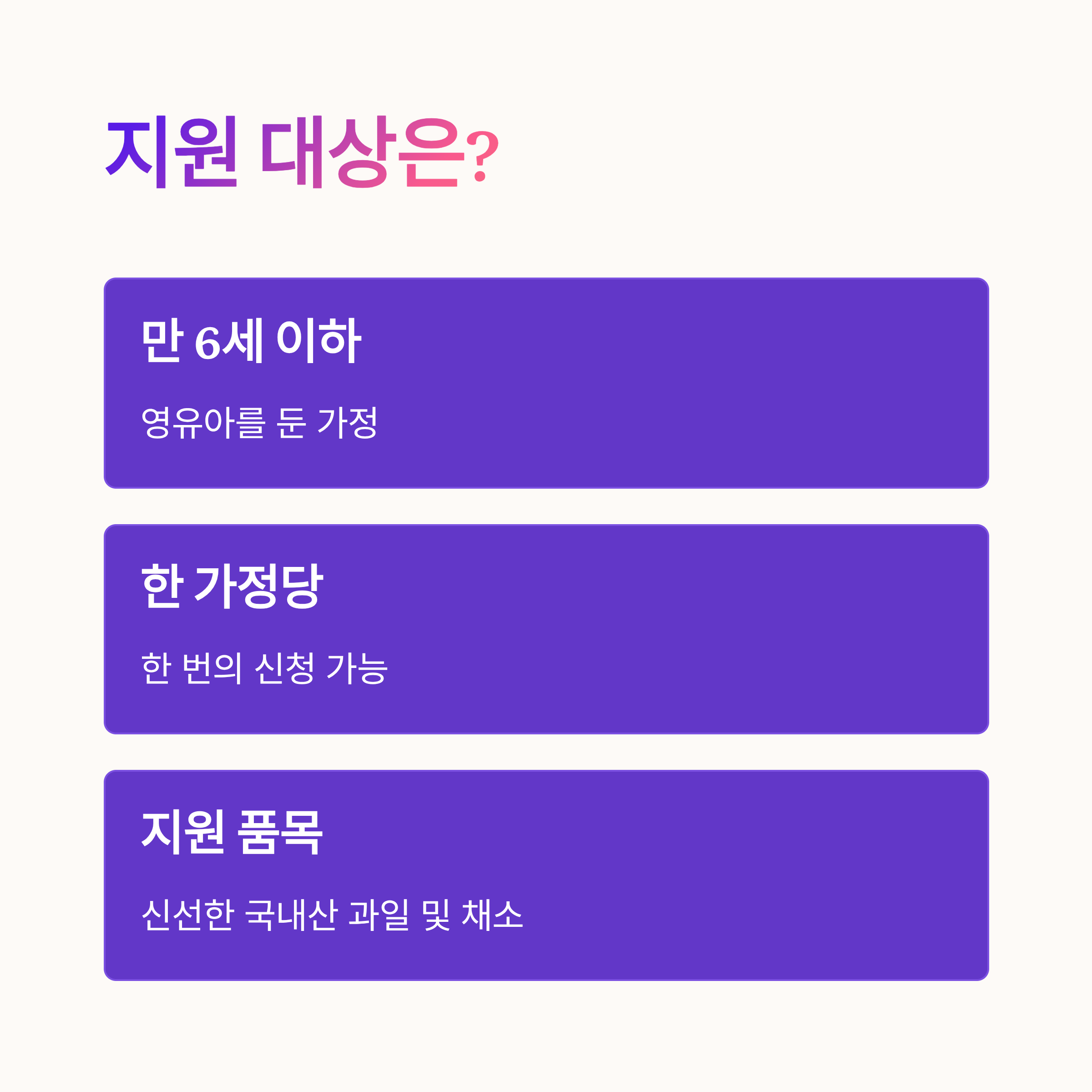 | 지원 품목 | 신선한 국내산 과일 및 채소 |