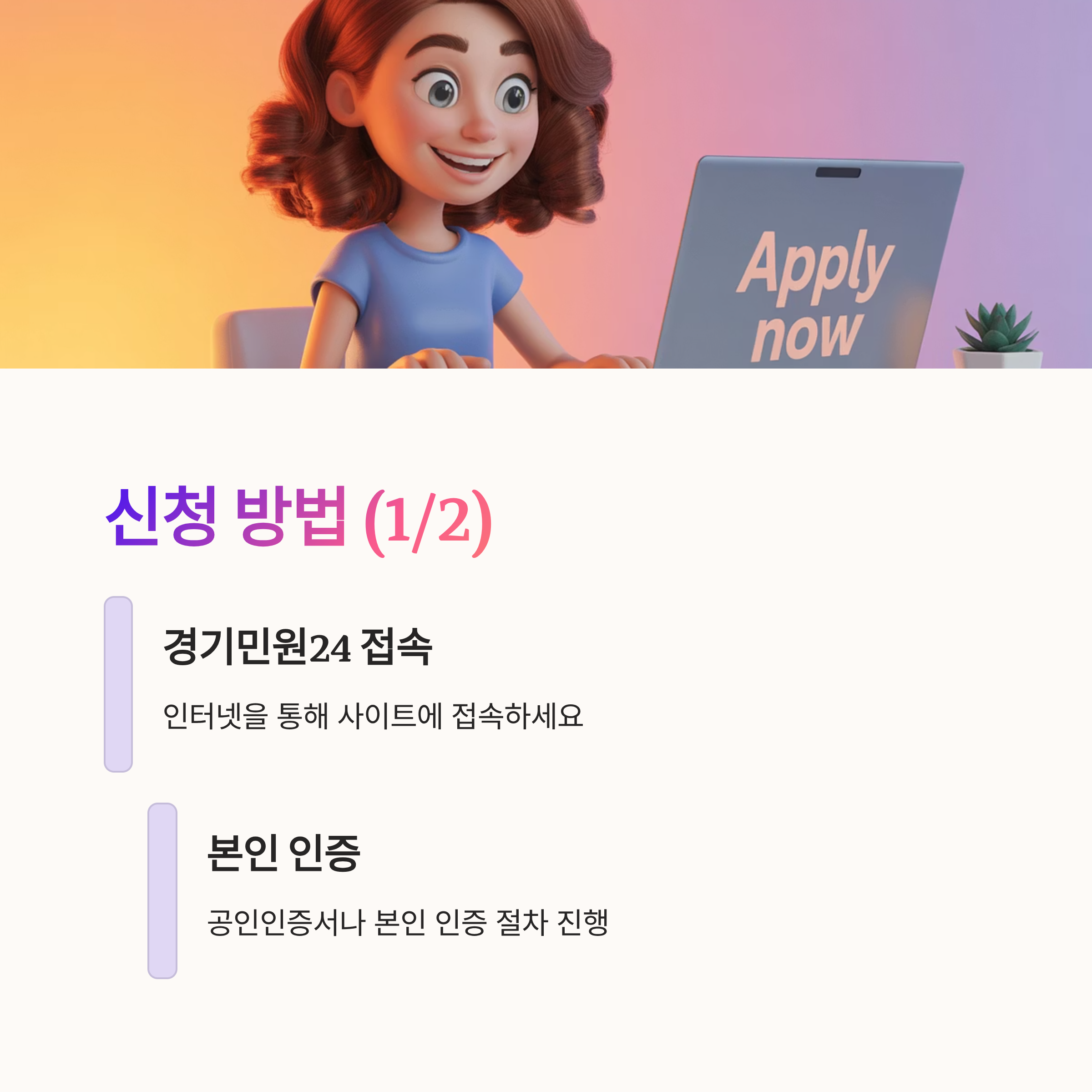 - 신청 사이트 접속: 인터넷을 통해 '경기민원24'에 접속합니다.