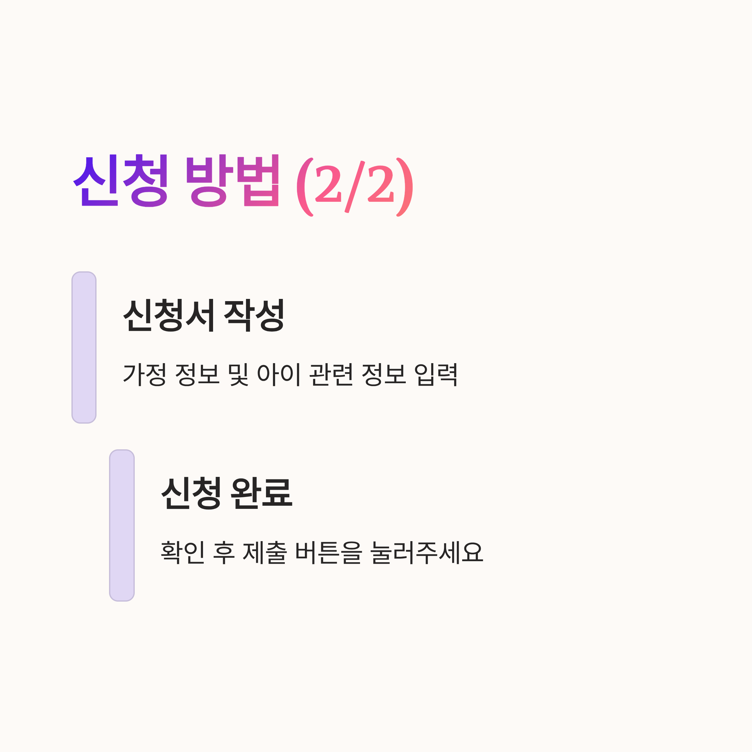 - 신청서 작성: 신청 페이지에서 가정 정보 및 아이 관련 정보를 입력합니다.