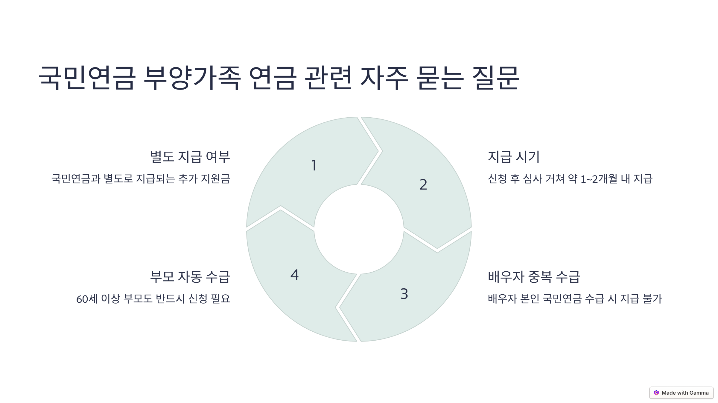 💡 중요: 배우자가 본인의 국민연금을 받고 있다면 부양가족 연금 중복 지급 불가