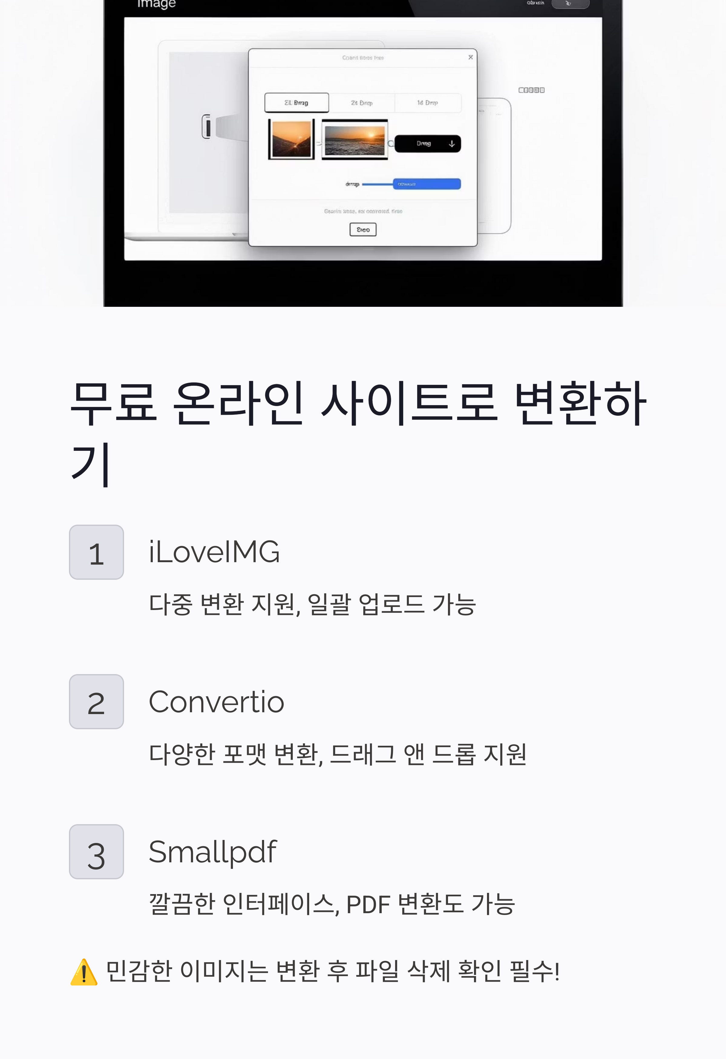 ⚠ 보안이 필요한 민감한 이미지는 변환 후 파일 삭제 확인 필수!