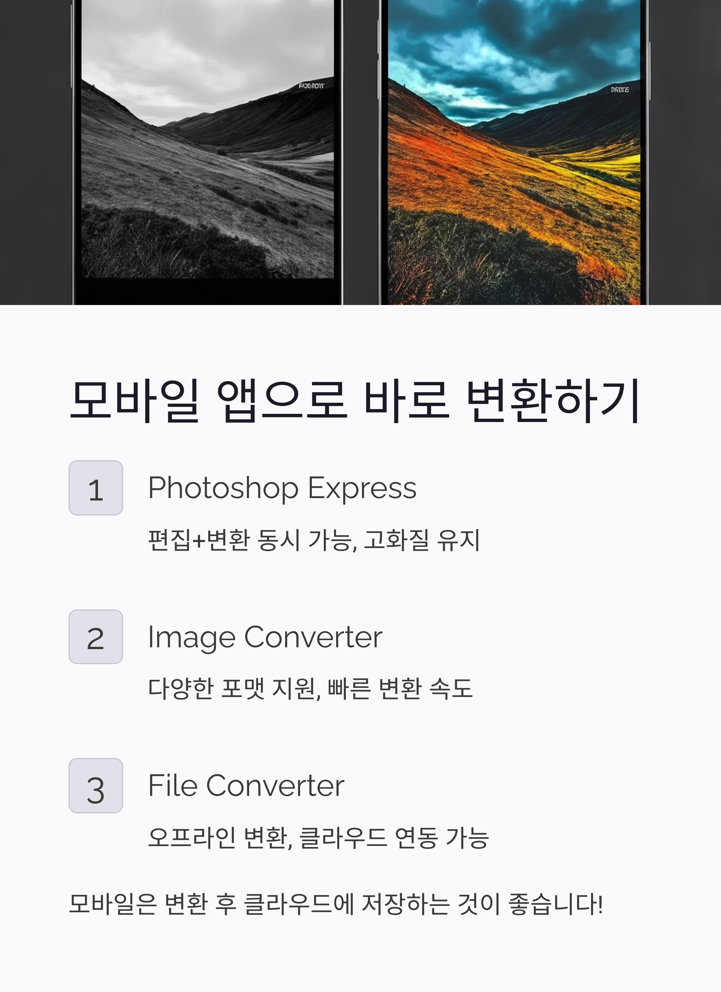 📌 모바일은 보통 저장공간이 작기 때문에, 변환 후 클라우드에 저장하는 게 좋아요!