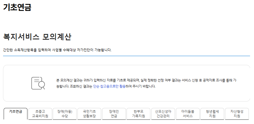 기초연금을 받을 수 있는지 확인하는 가장 쉬운 방법은 온라인 모의계산을 이용하는 것입니다.