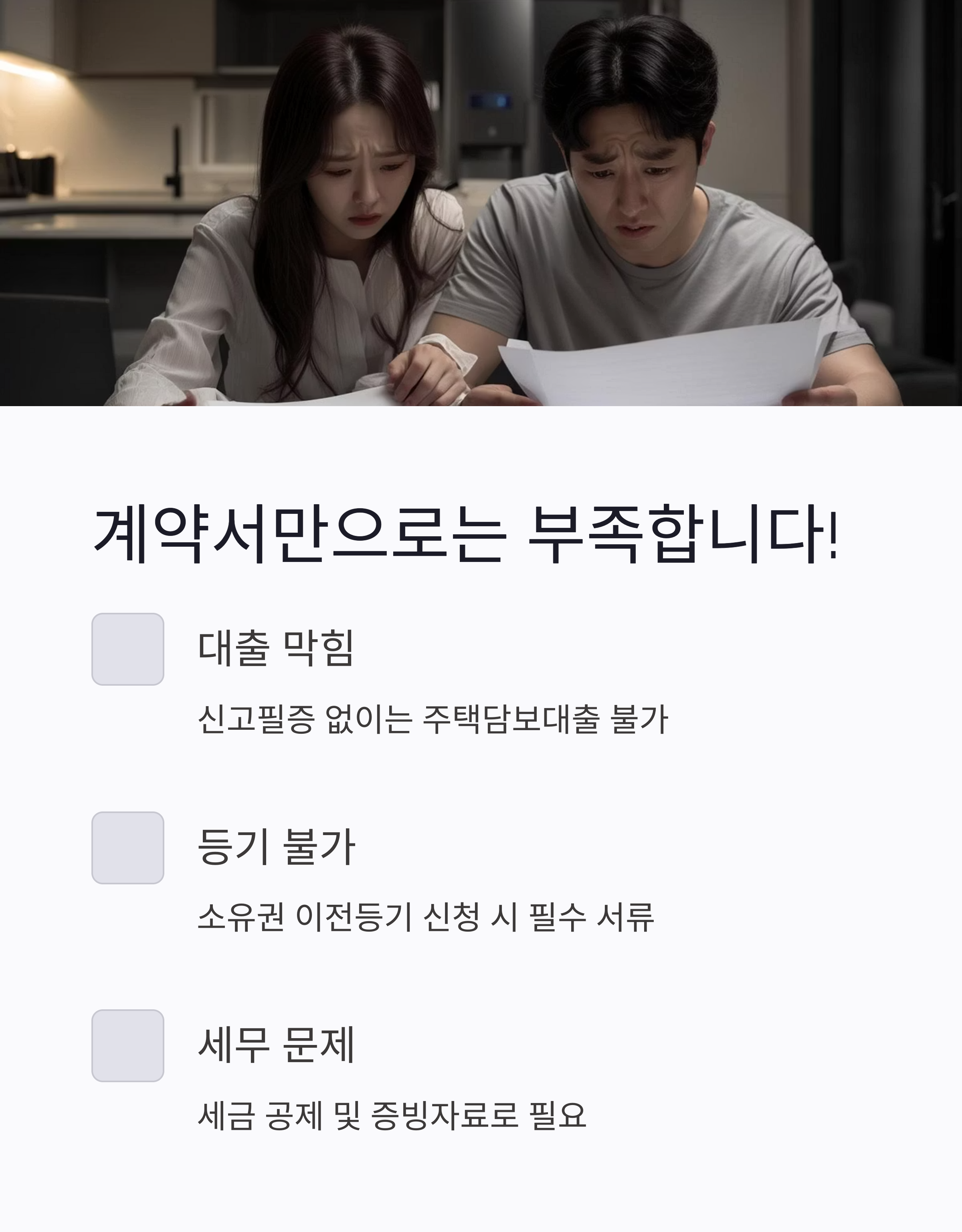 ✔ 없으면 등기 못 하고, 대출 못 받고, 세금 공제 못 받습니다.