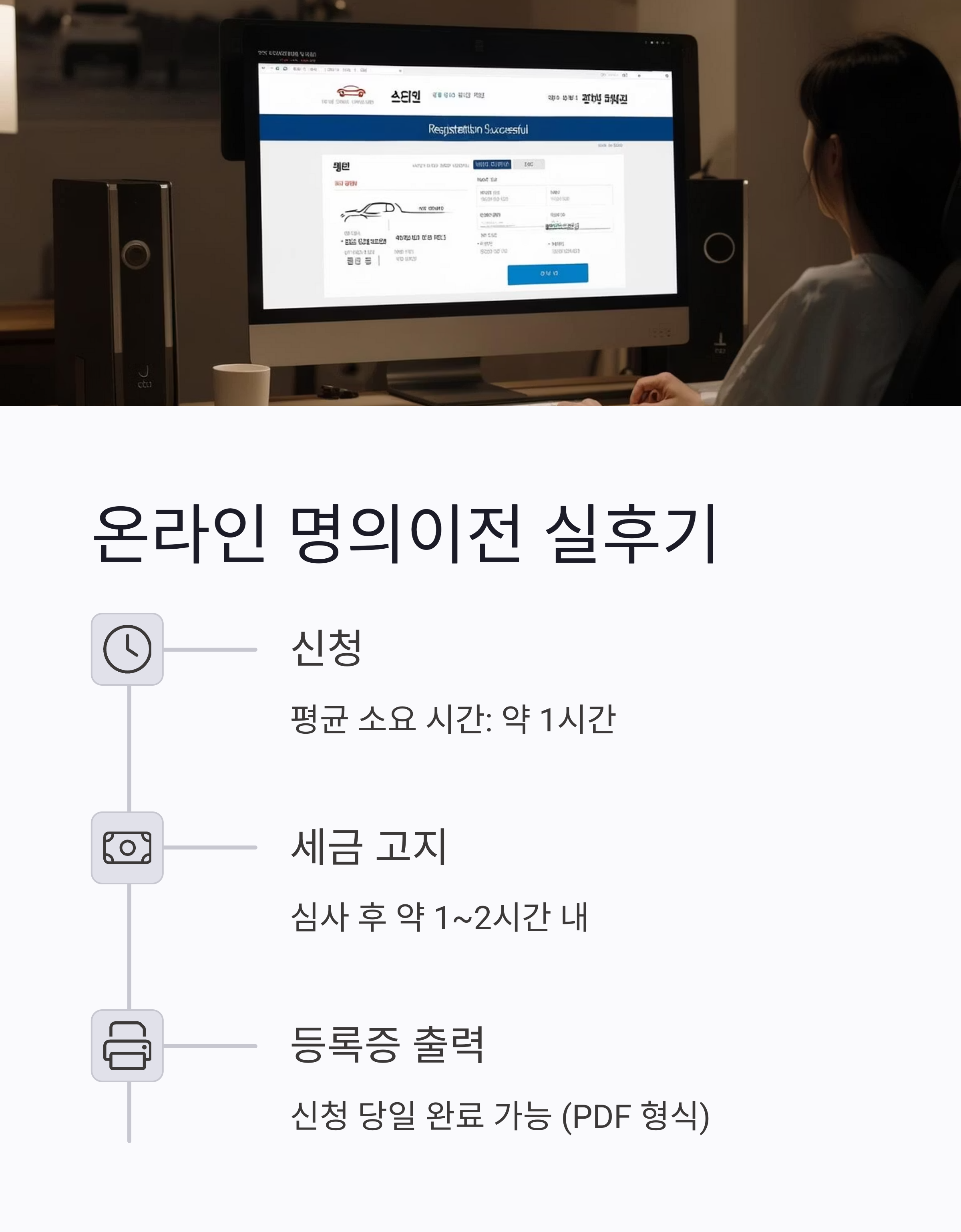 - 자동차등록증 출력: 신청 당일 완료 가능 (PDF 포함)