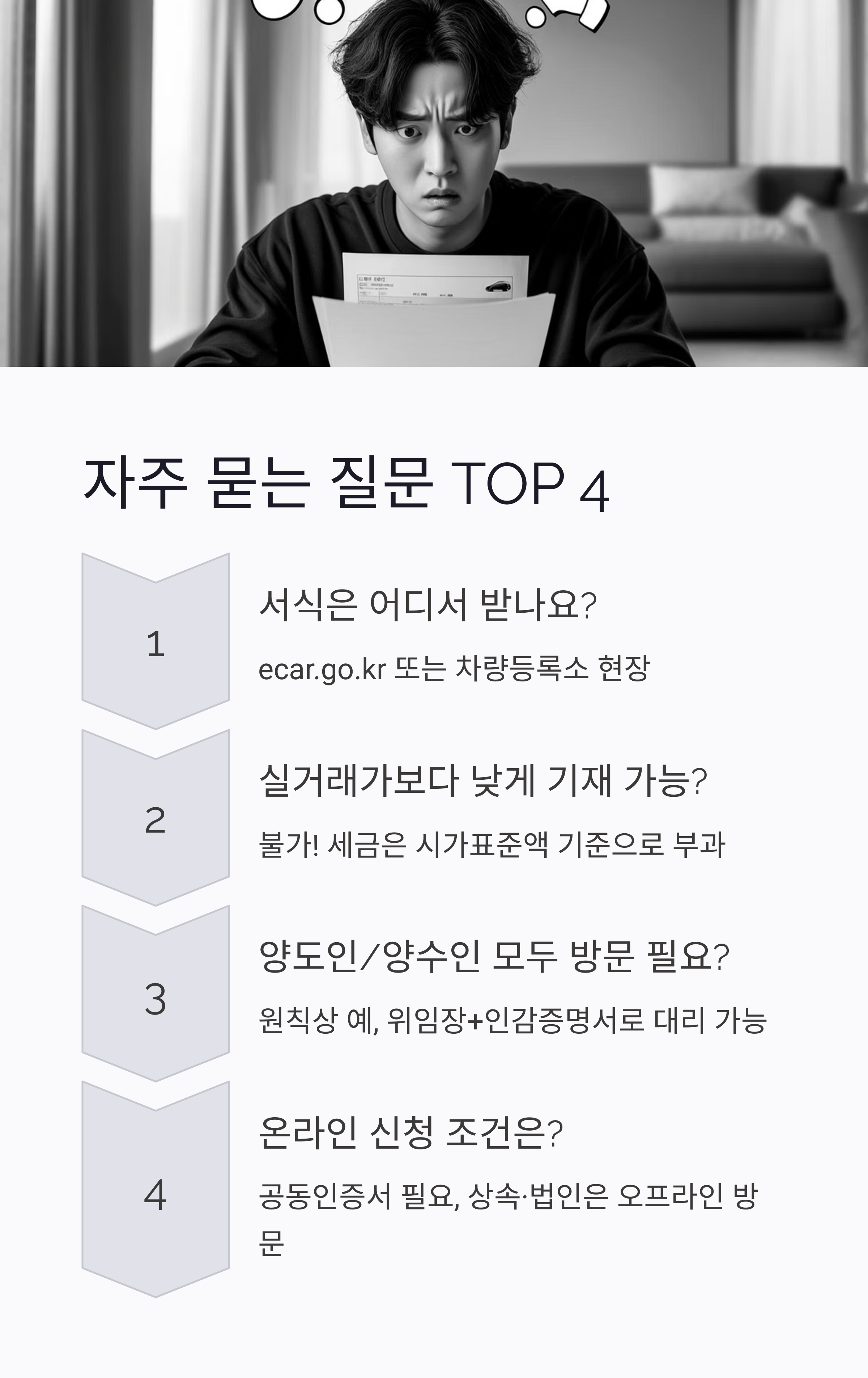 🏷 적용 사례: 중고차 매매, 증여, 상속, 가족 간 명의변경, 법인 차량 이전 등