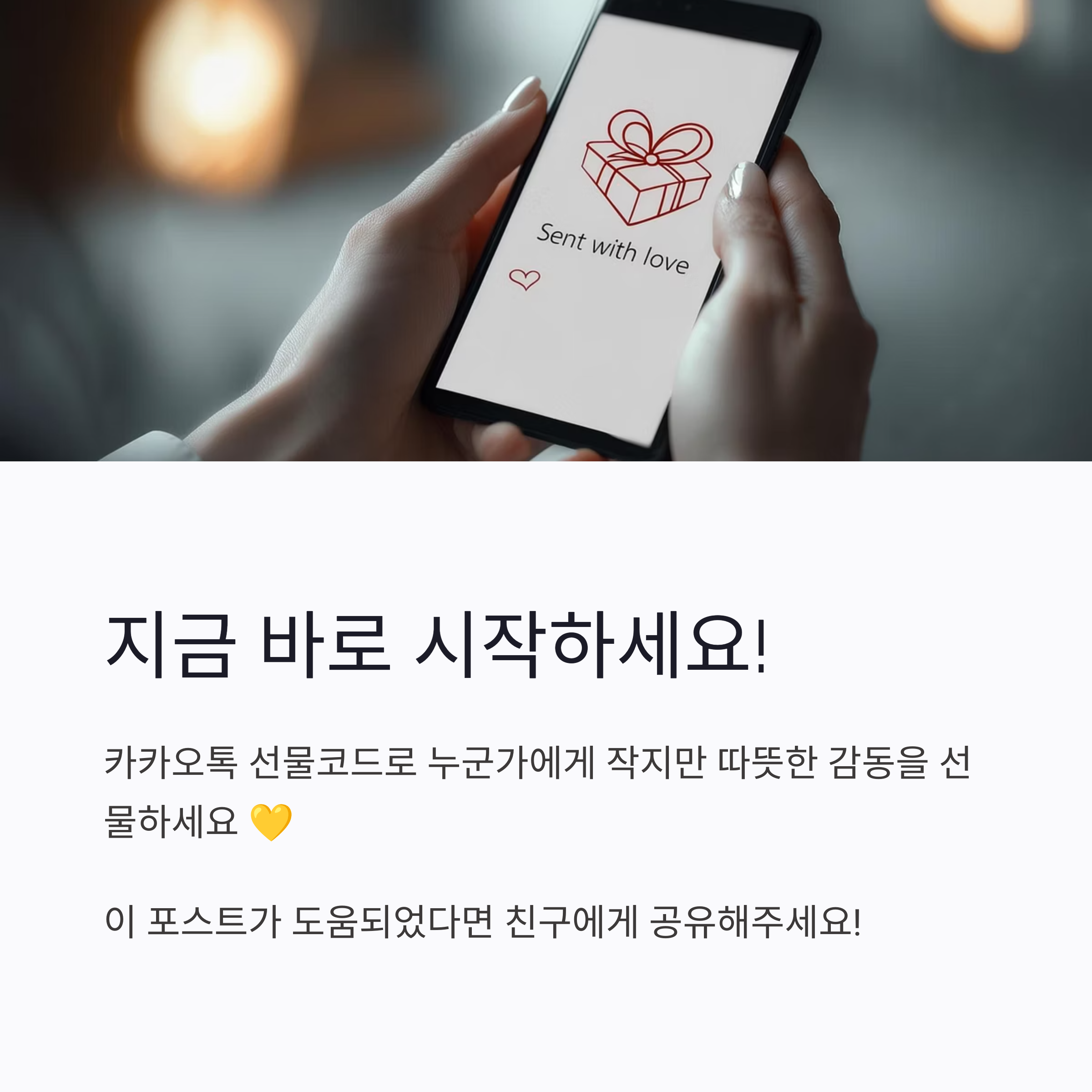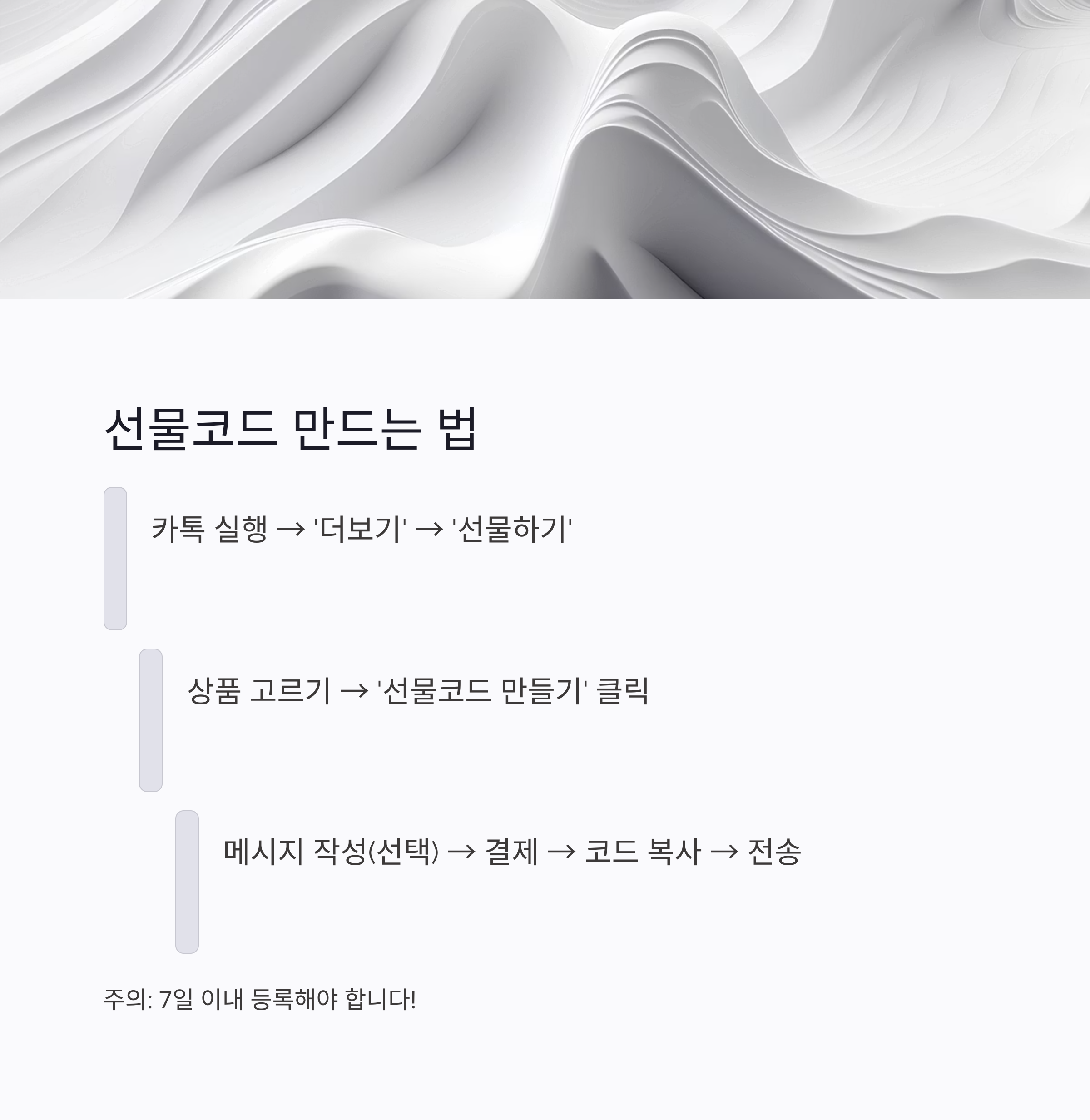 👉 지금 바로 카톡 실행해서, 선물코드 한 번 만들어보세유! 누군가한테 작지만 따뜻한 감동 줄지도 몰라요💛