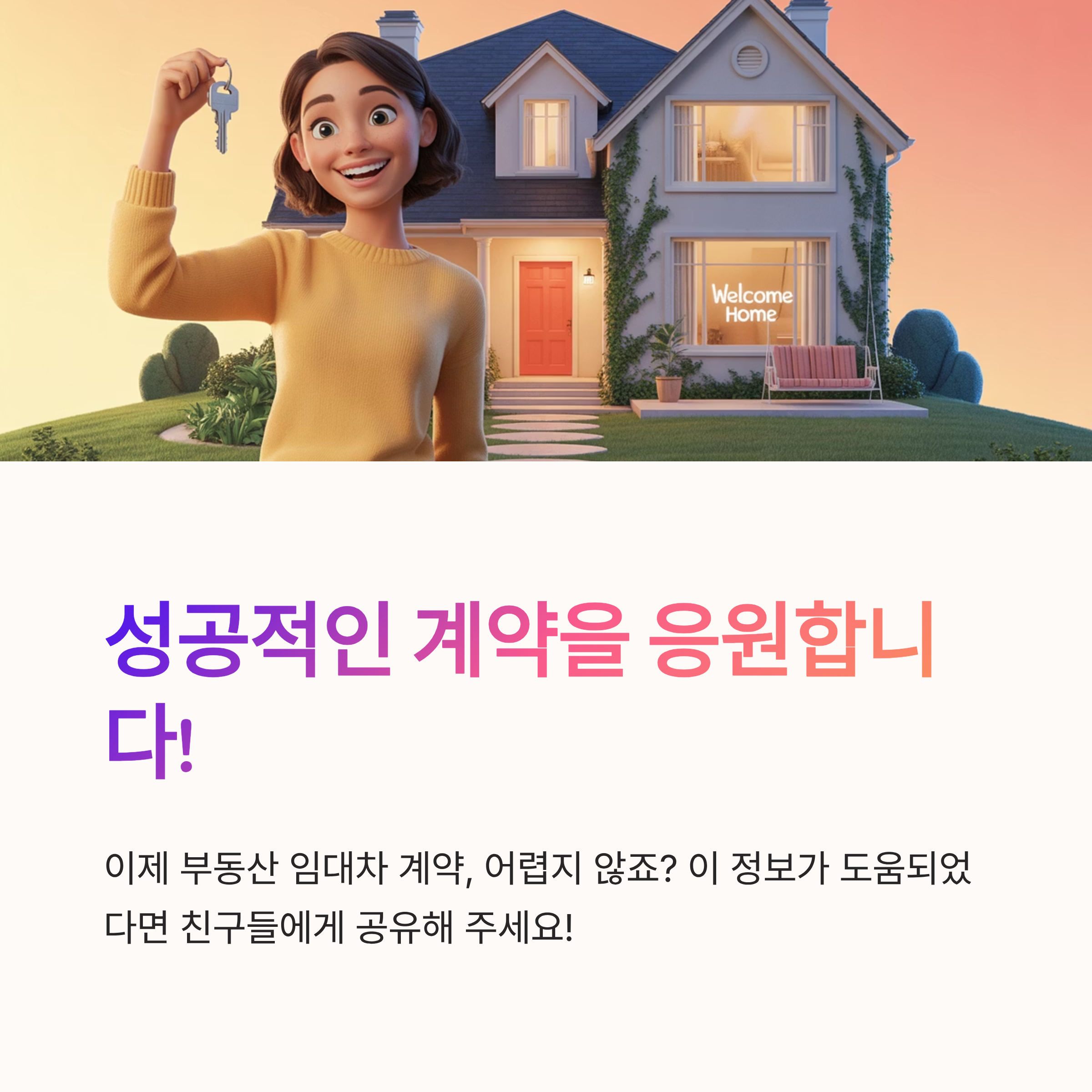 부동산 임대차 계약서 작성을 준비하며, 주위 사람들이 '진짜 어렵다더라'라고 말했던 때가 있었나요? 이제는 쉽게 준비할 자신 있으시죠? 🤗 흐흐, 그럼 성공적인 계약을 응원하며 글을 마치겠습니당!
