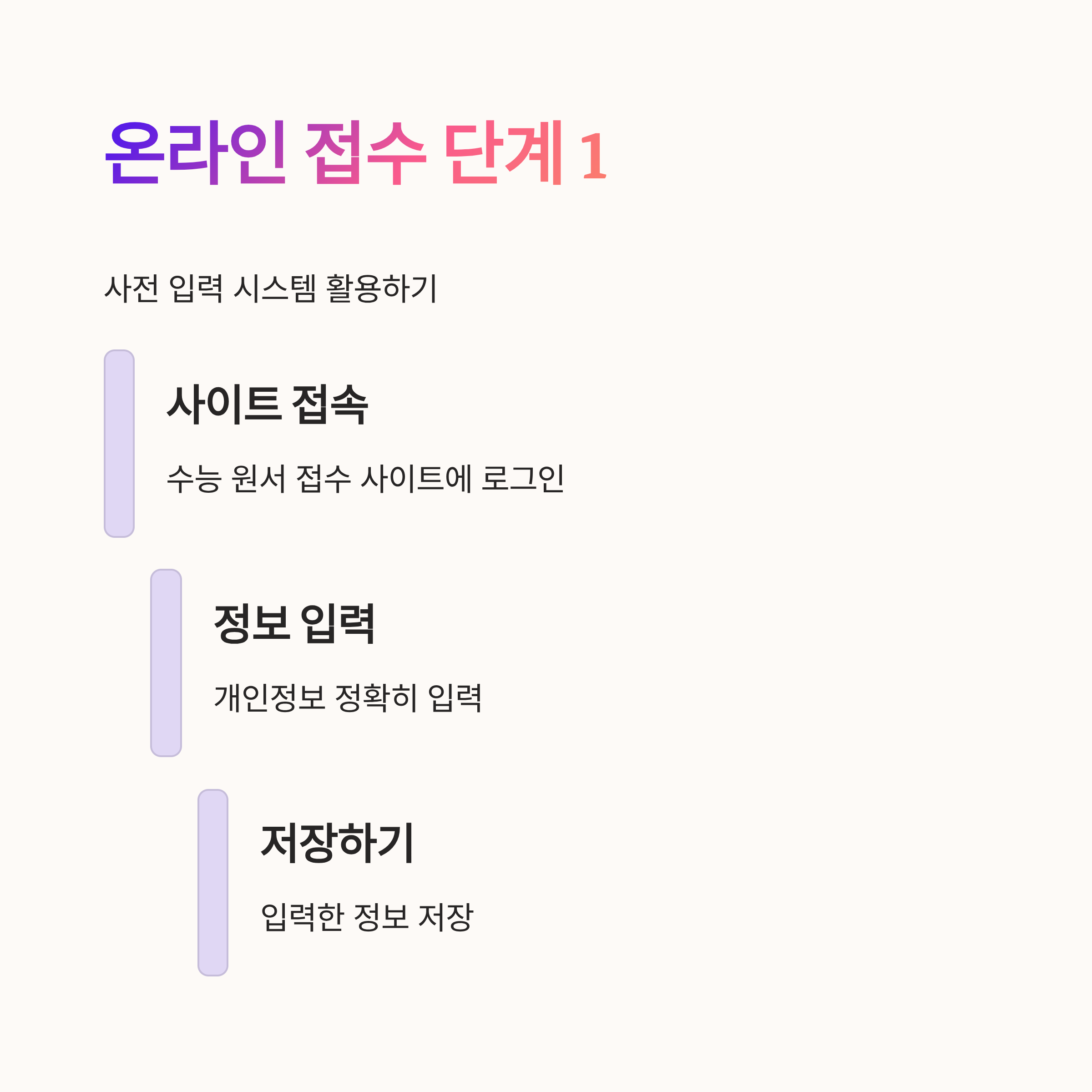 먼저, 8월 20일부터 시작되었죠! 이 사전 입력 시스템을 통해 미리 정보 입력을 해두면 접수 기간에 훨씬 간단한 절차만으로 끝낼 수 있어요~🤓