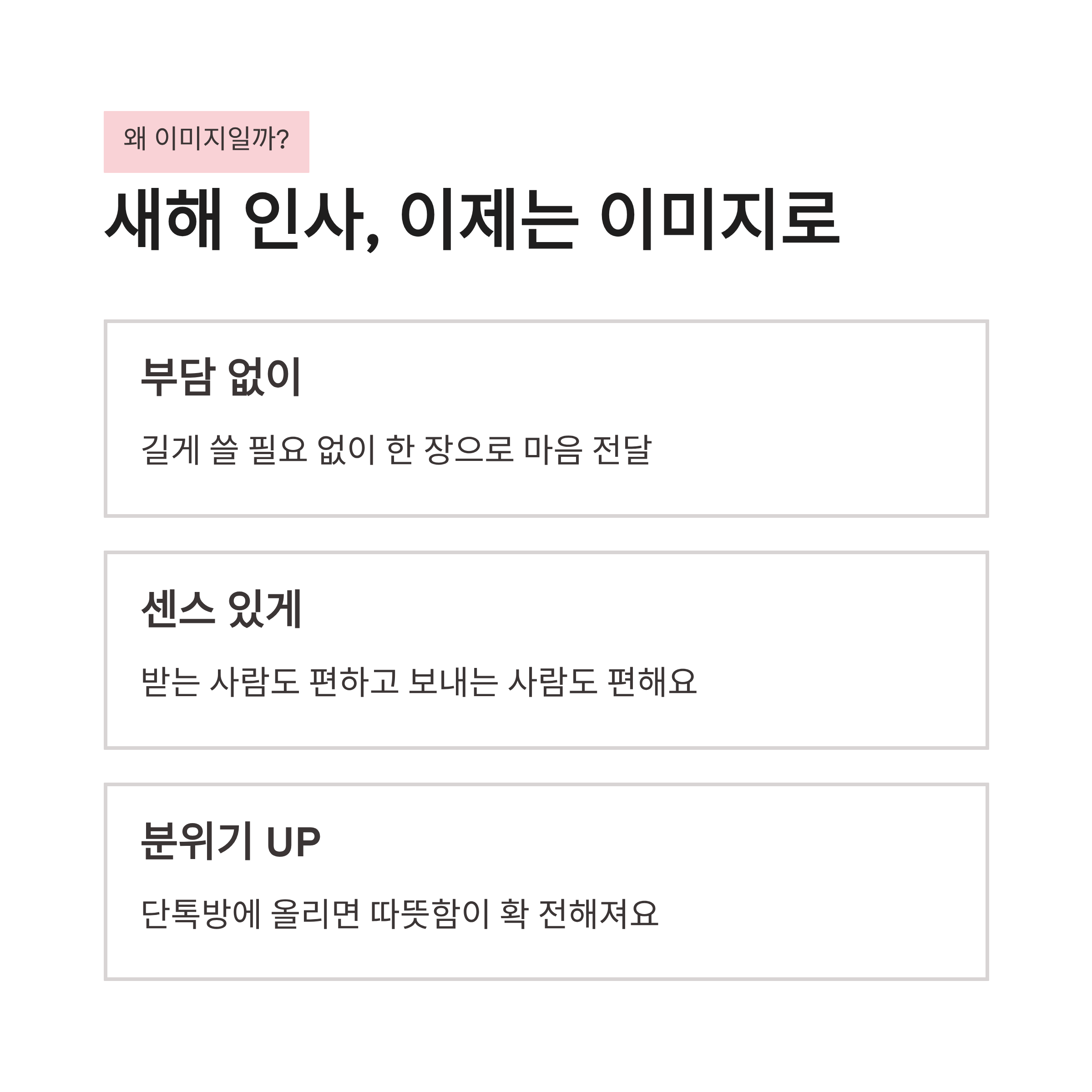 이렇게 상황별로 새해 인사 이미지를 나눠서 쓰니까 훨씬 센스 있어 보이더라구요. 실제로 “이미지 예쁘다”는 말도 종종 들었구요.
