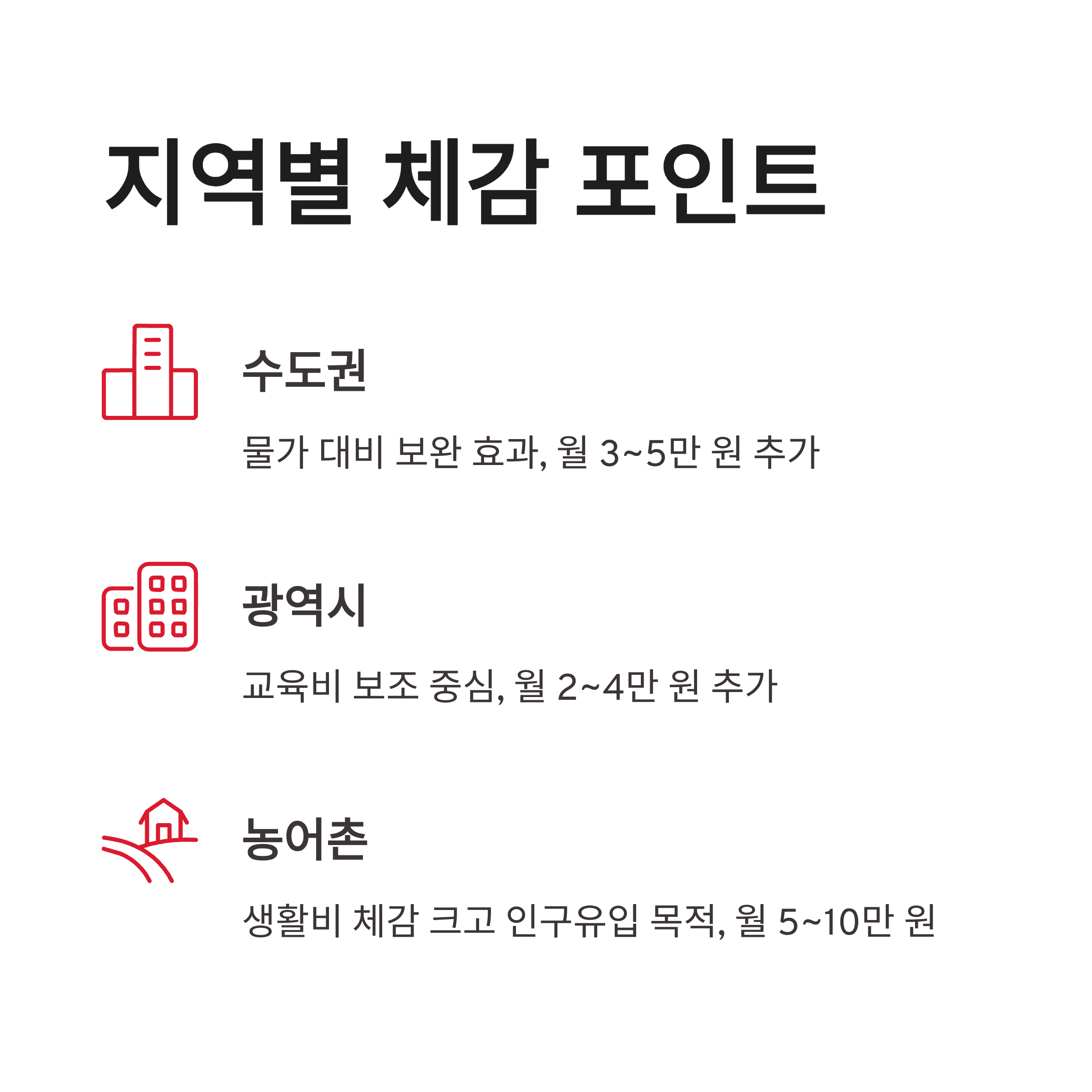 _x000D__x000D_ 이번 아동수당 확대에서 은근히 중요한 게 바로 지역별 차이예요. 전국 공통 지급에 더해, 일부 지자체는 추가 지원금을 얹어주는 방식으로 가고 있거든요. 제가 직접 지자체 공고 찾아보면서 정리해봤어요._x000D__x000D_ _x000D__x000D_ | 구분 | 기본 아동수당 | 지자체 추가지원 | 체감 포인트 |_x000D__x000D_ | ------ | ------- | -------- | -------- |_x000D__x000D_ | 수도권 | 월 10만 원 | 3~5만 원 | 물가 대비 보완 |_x000D__x000D_ | 광역시 | 월 10만 원 | 2~4만 원 | 교육비 보조 |_x000D__x000D_ | 군·중소도시 | 월 10만 원 | 5~10만 원 | 생활비 체감 큼 |_x000D__x000D_ _x000D__x000D_ 특히 농어촌 지역은 인구 유입 목적까지 겹쳐서 아동수당 확대 폭이 꽤 크더라구요. 연관해서 많이 찾는 키워드는 *지역별 아동수당, 지자체 추가지원, 출산지원 정책* 이런 쪽이었어요._x000D__x000D_ _x000D__x000D_