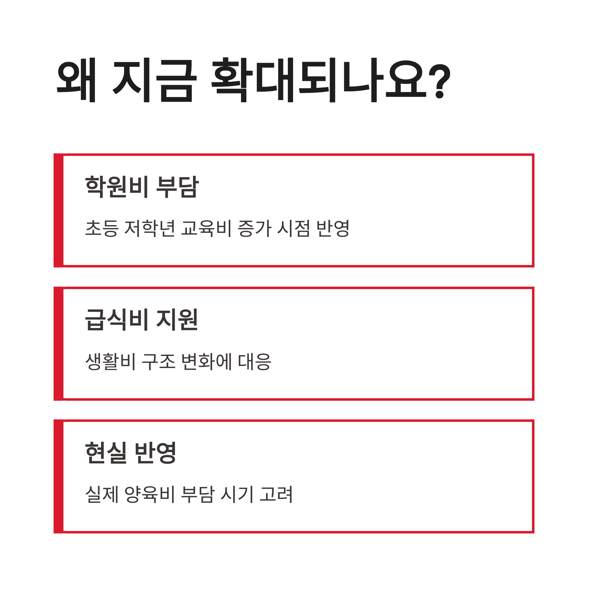 _x000D__x000D_ 요즘 부모 커뮤니티에서도 아동수당 확대 얘기 진짜 많아요. 장점부터 말하면 당연히 현금성 지원이라 쓰임이 자유롭다는 점! 급식비, 교통비, 학용품 뭐든 가능해서 좋아요._x000D__x000D_ 단점은요… 지역마다 시행 시점이 다르다는 점 ㅠㅠ 같은 2026년이라도 어떤 곳은 상반기, 어떤 곳은 하반기 시작이라 헷갈릴 수 있어요. 그래도 전체 흐름은 확실히 아동수당 확대 방향으로 가고 있어서 중장기적으로는 긍정적이라 봅니다._x000D__x000D_ _x000D__x000D_