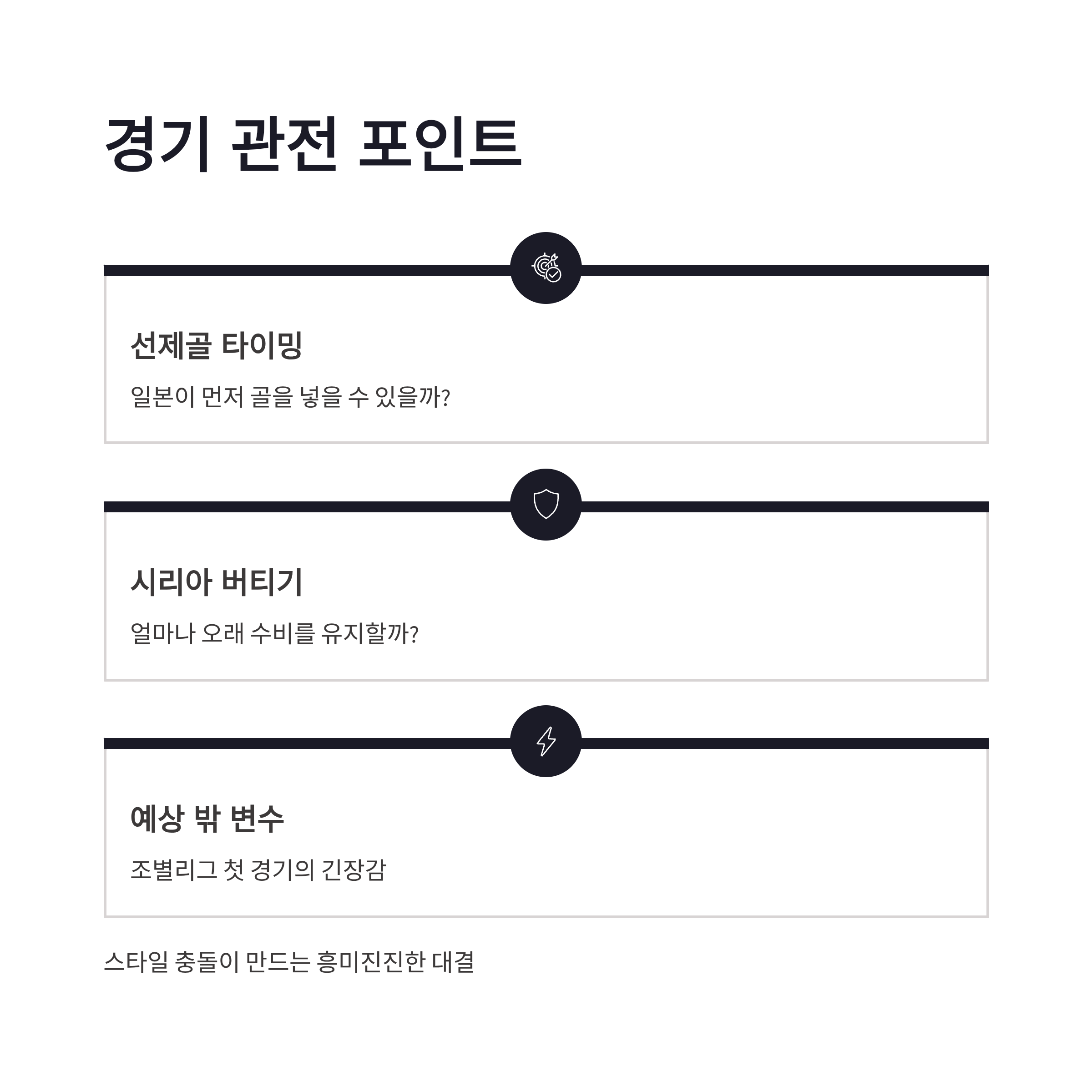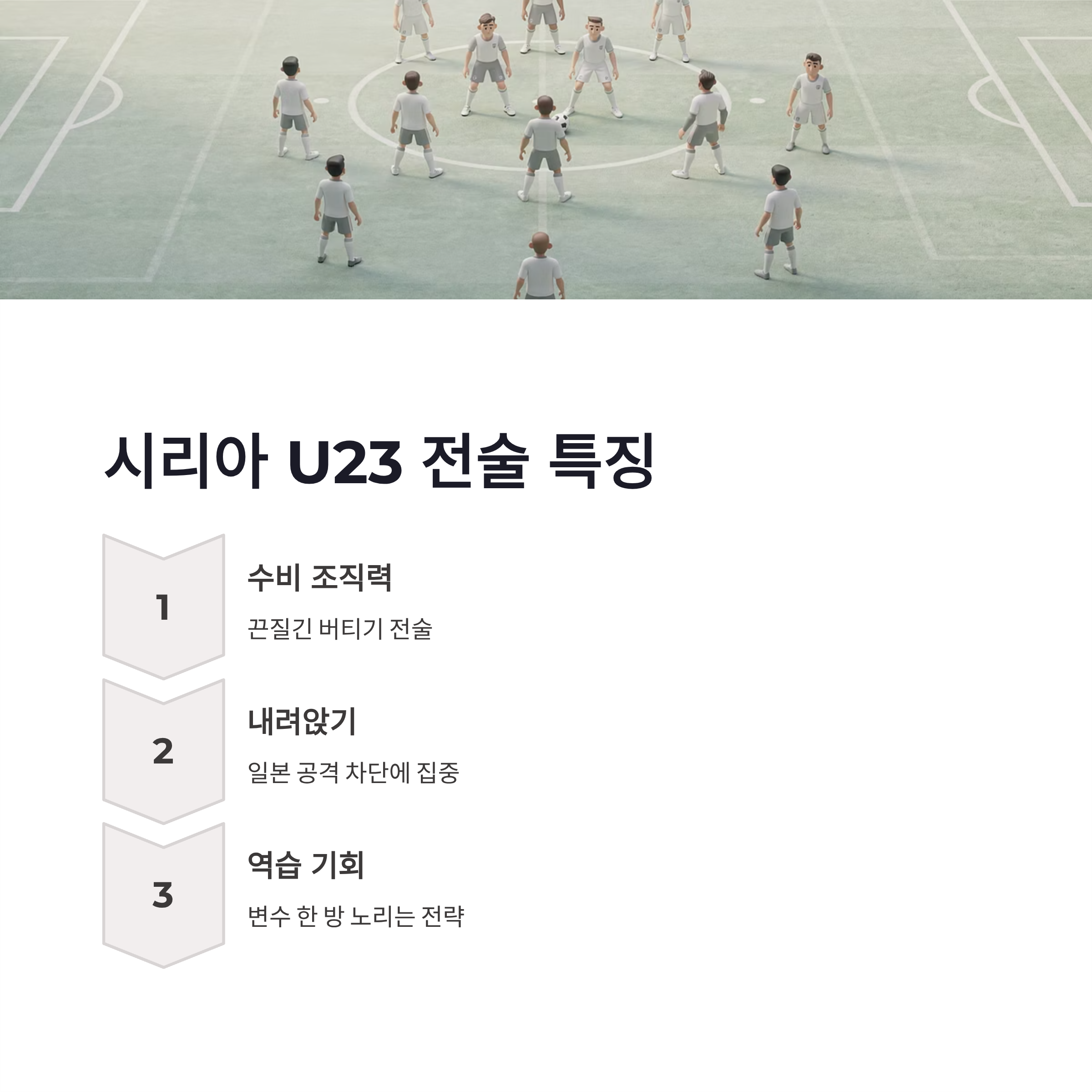 이번 대회 일본은 역시 탄탄합니다. 일본 U-23 대표팀은 정확한 패스, 빠른 볼 회전, 그리고 안정적인 수비까지 기본기가 확실하죠. 감독도 경기 운영을 굉장히 차분하게 가져가는 스타일이라 큰 흔들림이 없구요. 반면 시리아 U-23 대표팀은 내려앉아서 버티는 전술이 예상됩니다. 일본이 먼저 골을 넣느냐, 시리아가 얼마나 오래 버티느냐가 관전 포인트 같더라구요. 이런 스타일 충돌이 바로 2026 AFC U23 일본 아시안컵 중계의 재미 포인트 아닐까 싶어요.