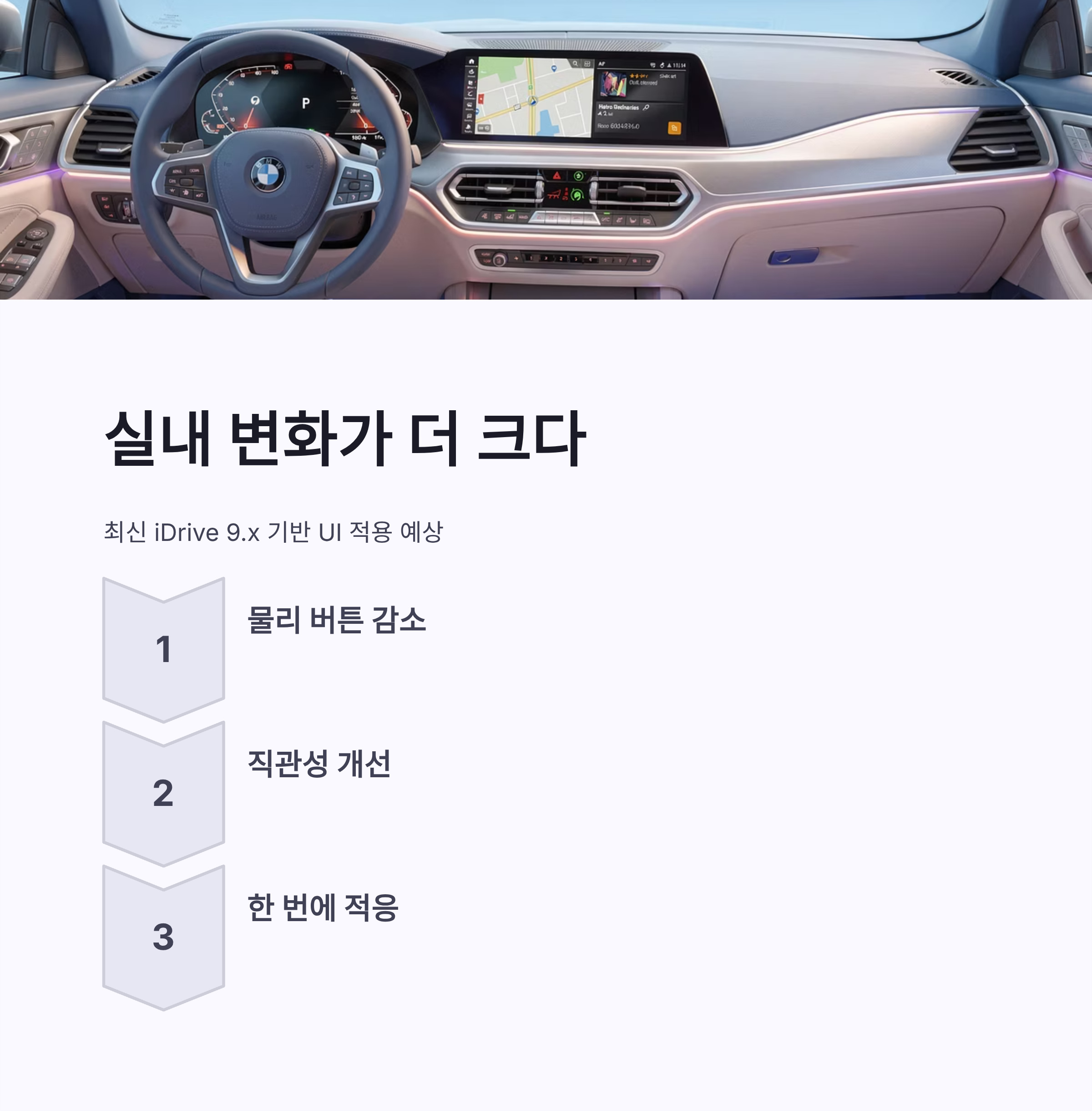 | UI | iDrive 최신 버전 | 반응 속도 개선 |