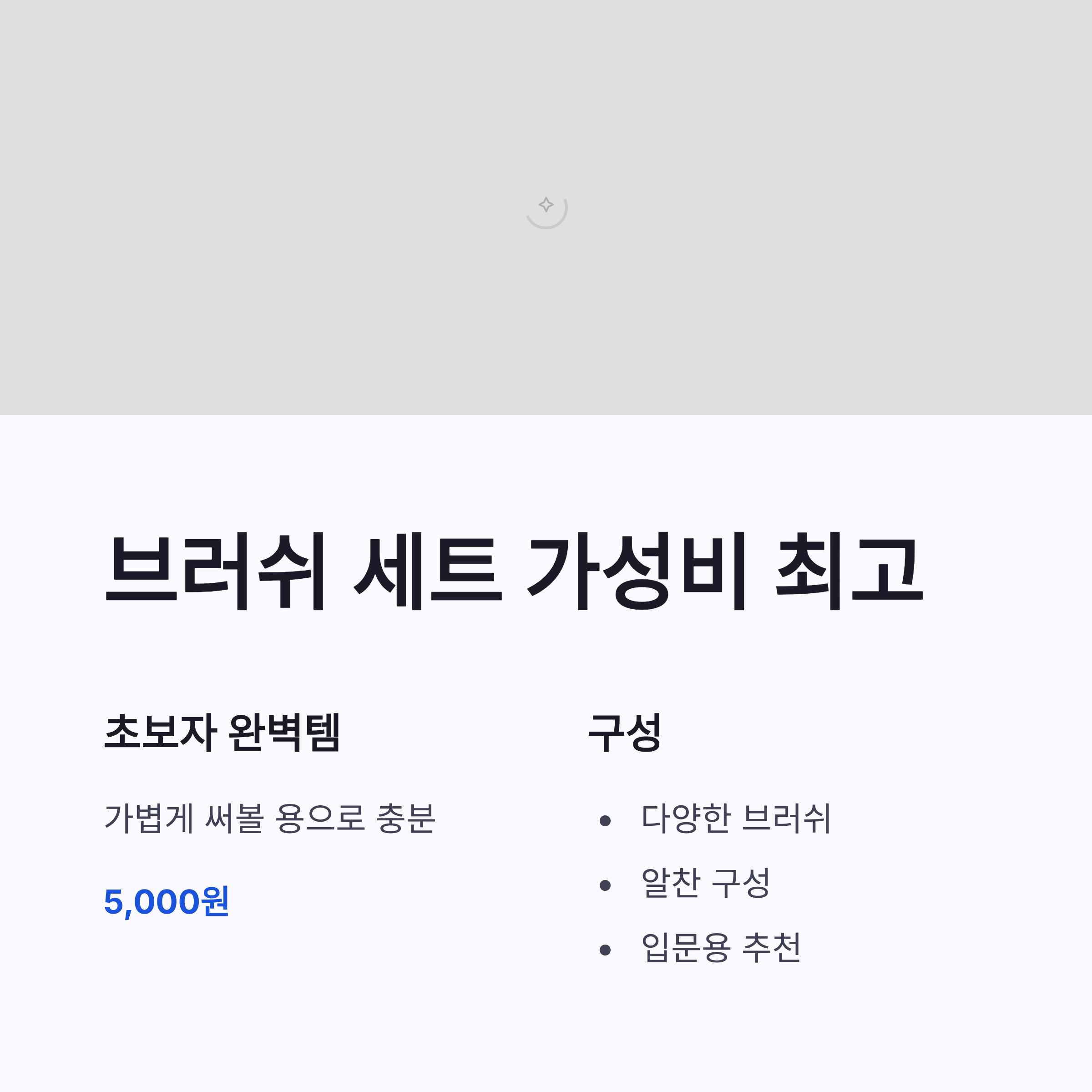 | 브러쉬 세트 | 뷰티툴 | 5,000원 | 초보용으로 알차요 |