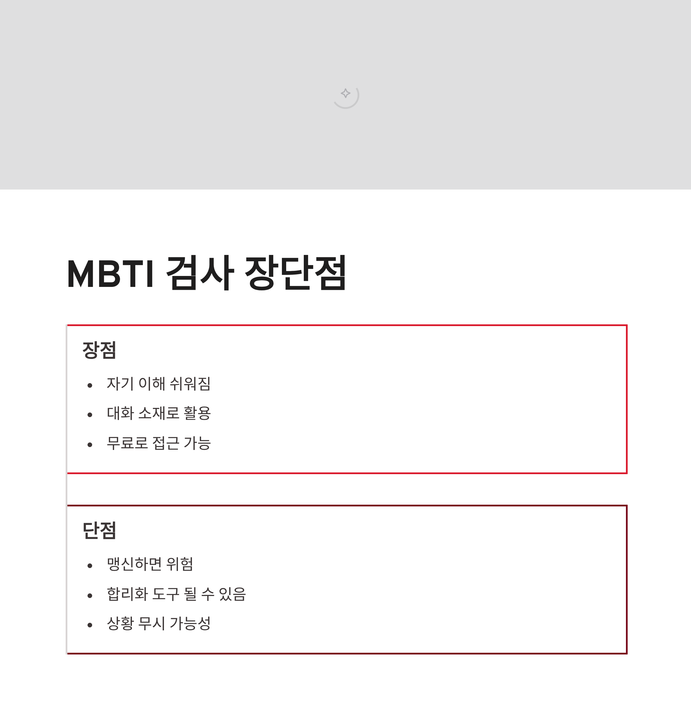 | 구분 | MBTI 검사 특징 | 추천 대상 |