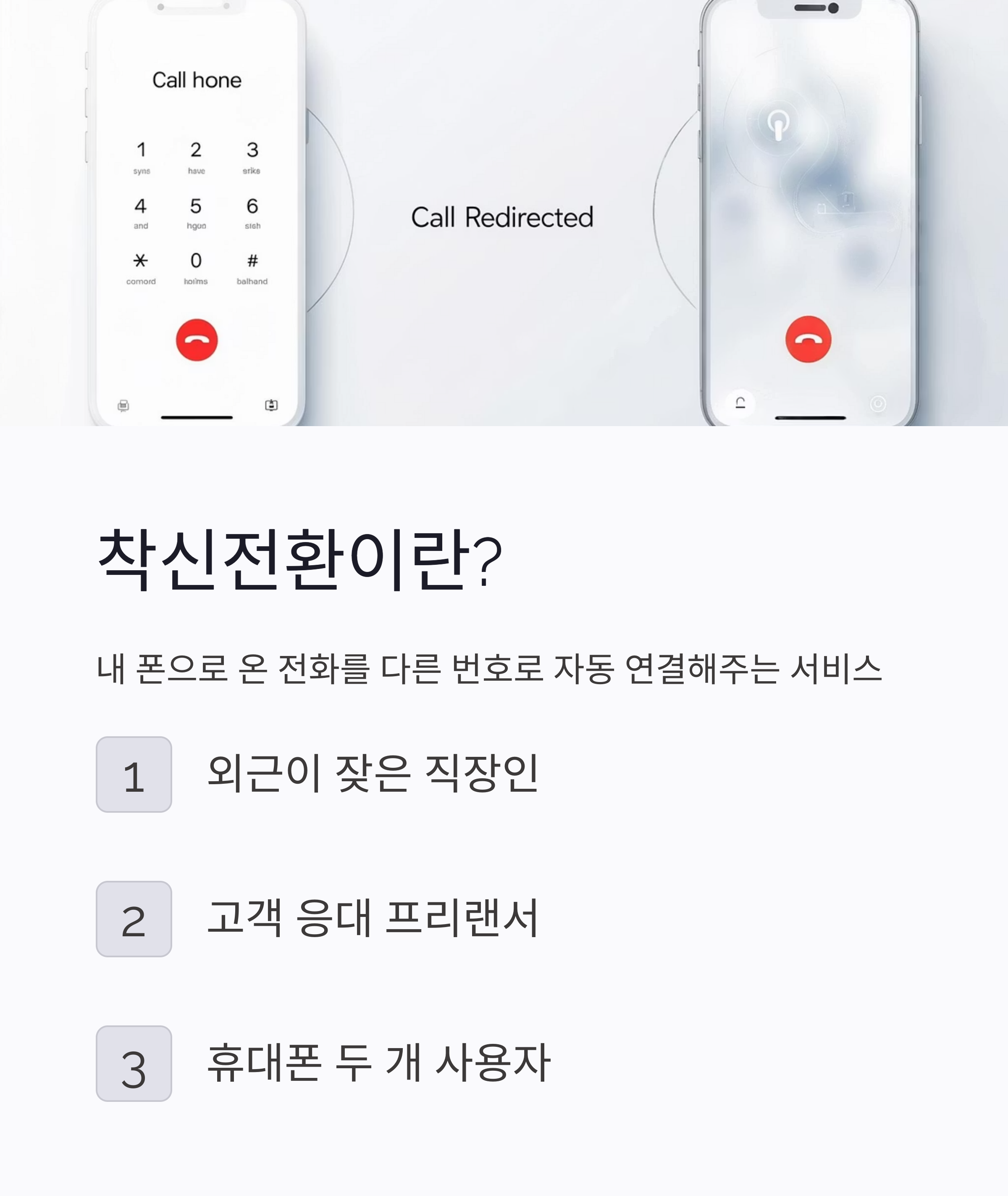 간단히 말하면, 내 폰으로 온 전화를 다른 번호로 자동 연결해주는 서비스예요.