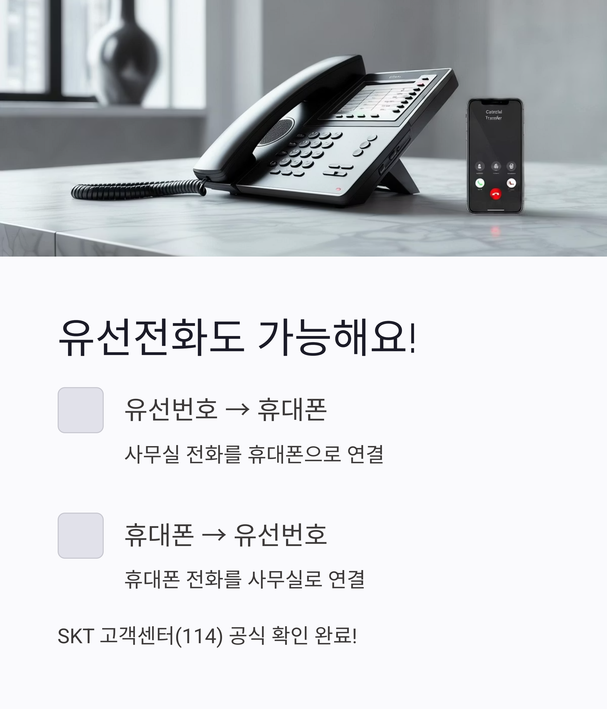 유선번호 → 휴대폰 / 휴대폰 → 유선번호 모두 착신전환 설정 가능하다고 안내받았습니다.
