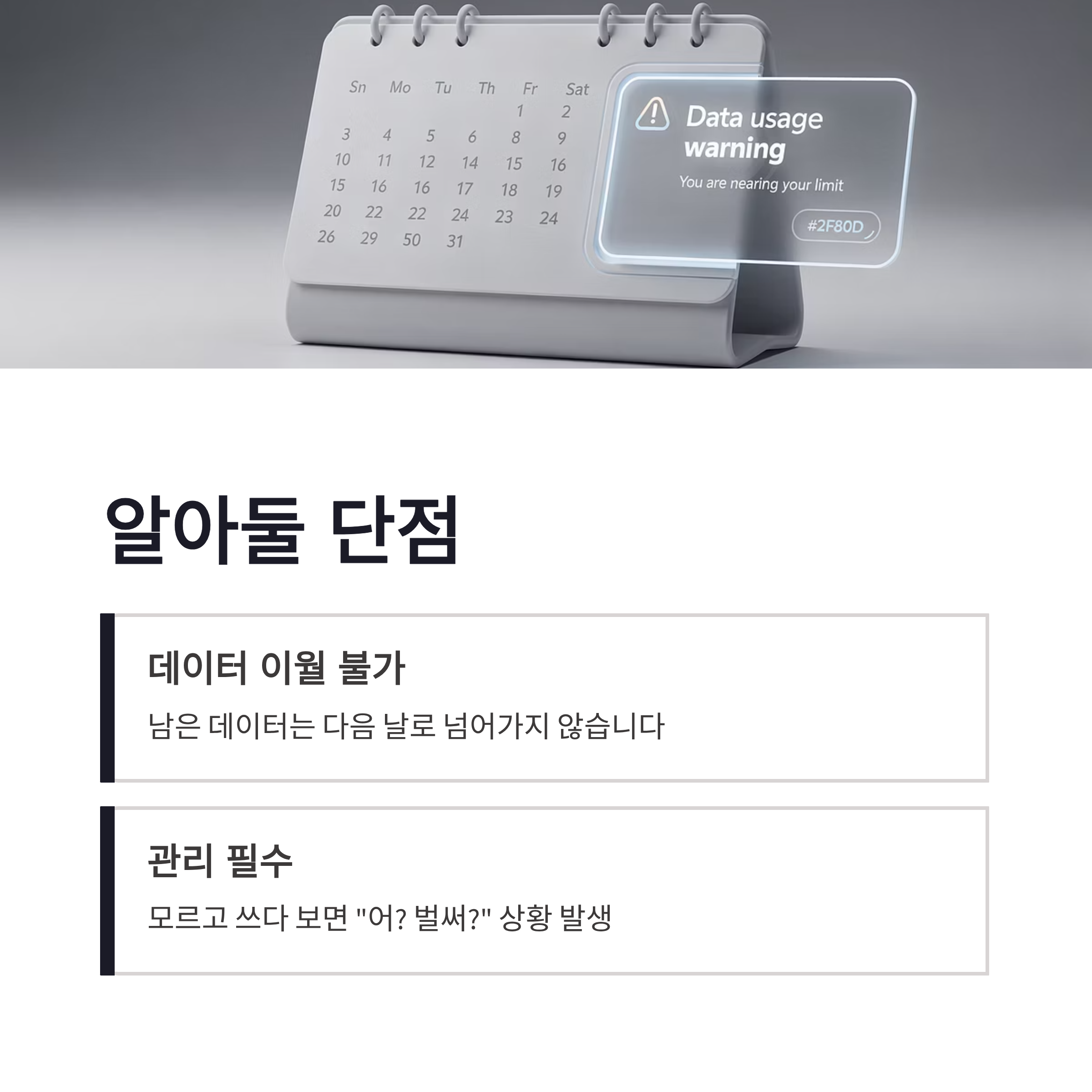 요즘 로밍 옵션 많잖아요. 그래도 Baro 쓰는 이유는 명확하더라구요. 장점부터 보면, 데이터 다 써도 끊기지 않고 속도 제한으로 계속 쓸 수 있는 점. 카톡, 지도, 검색은 문제 없었습니다. 그리고 전화 무료… 이거 은근히 큽니다. 단점이라면, 남은 데이터 이월 안 되는 거. 그래서 더더욱 SKT Baro 로밍 잔여 데이터 체크가 중요해집니다. 모르고 쓰다 보면 “어? 벌써?” 이런 상황 나와요.
